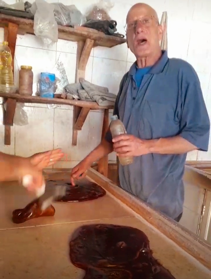 وأضاف صفوت أنهم يستخدمون خامات ومواد تصنيع بتواريخ إنتاج وصلاحية حديثة لتكون طازجة وتليق باسم وسمعة المصنع كما أنهم يشترون العسل بنوعية فى براميل ويتم تصنيع العسلية وتعبئتها وعرضها فى المحل.