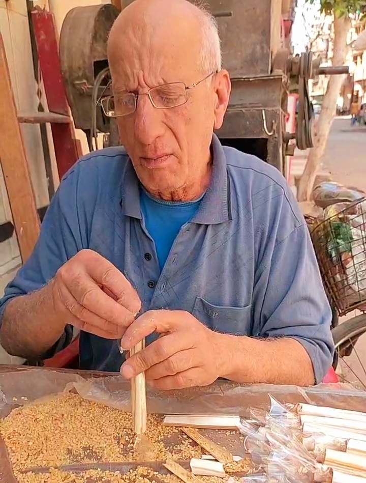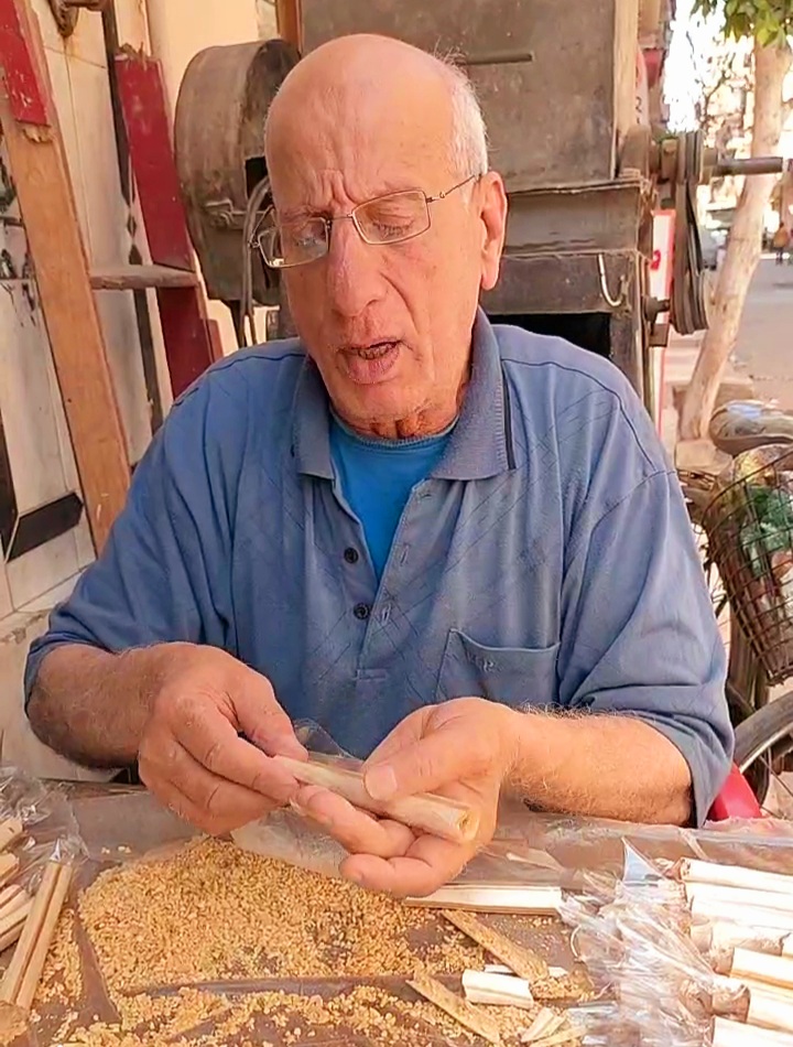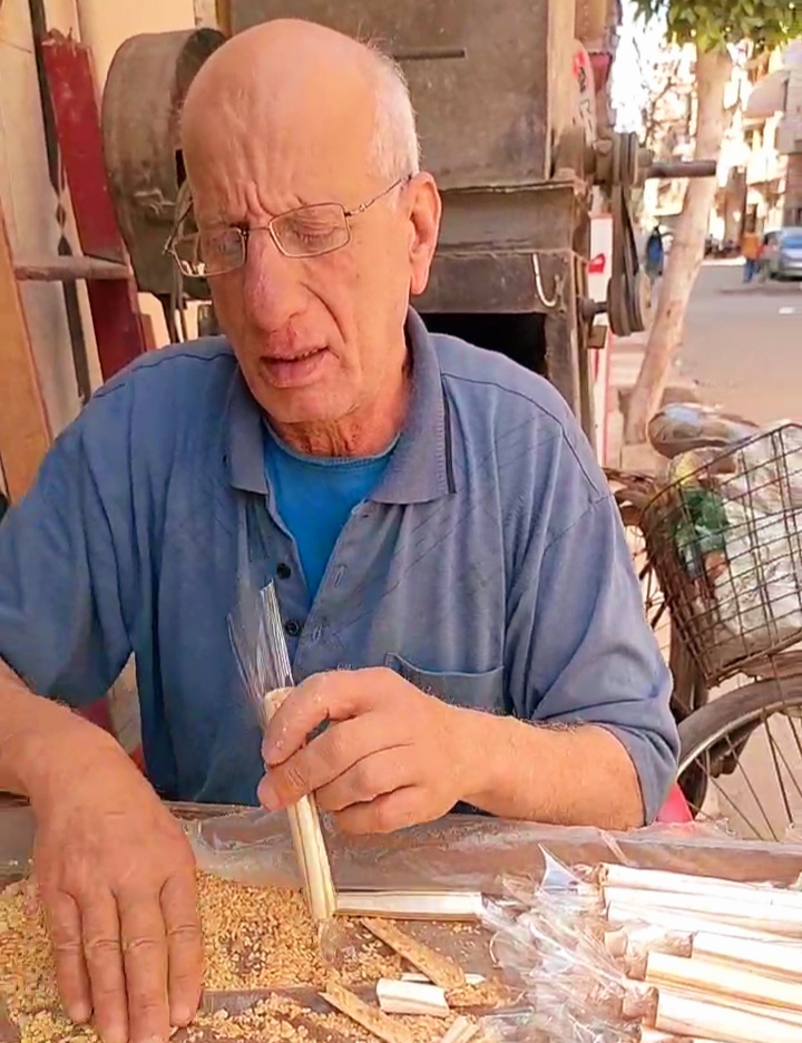 انحنى جسده لكنه لا يزال يعمل فى صنعته التى تربى وترعرع عليها منذ ٥٠ عاما.. صناعة العسلية وبيعها بمدينة طنطا بمحافظة الغربية ويقصده القريب والبعيد طلبا لهذه العسلية سواء من أبناء مدينة طنطا أو قراها.