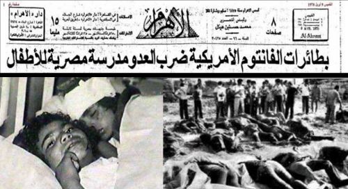 فى مثل هذا اليوم 8 أبريل عام 1970 شنت طائرات القوات الجوية الإسرائيلية هجومًا وحشيًّا تجاه منطقة الحسينية محافظة الشرقية، وقصفت طائرات من طراز فانتوم مدرسة بحر البقر الابتدائية المشتركة فى قرية بحر البقر، مما أدى إلى تدمير المدرسة واستشهاد العديد من الأطفال من تلاميذ المدرسة، فى مذبحة وحشية من سلسلة مذابح إسرائيل للمدنيين بدأتها بحادث ضرب مصنع أبى زعبل.