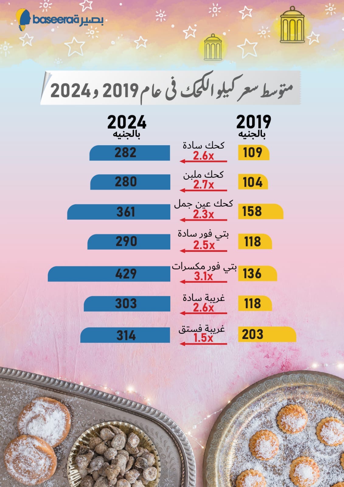 من 109 إلى 282 جنيها، بصيرة ترصد أسعار الكحك في 2024 مقارنة بـ 2019