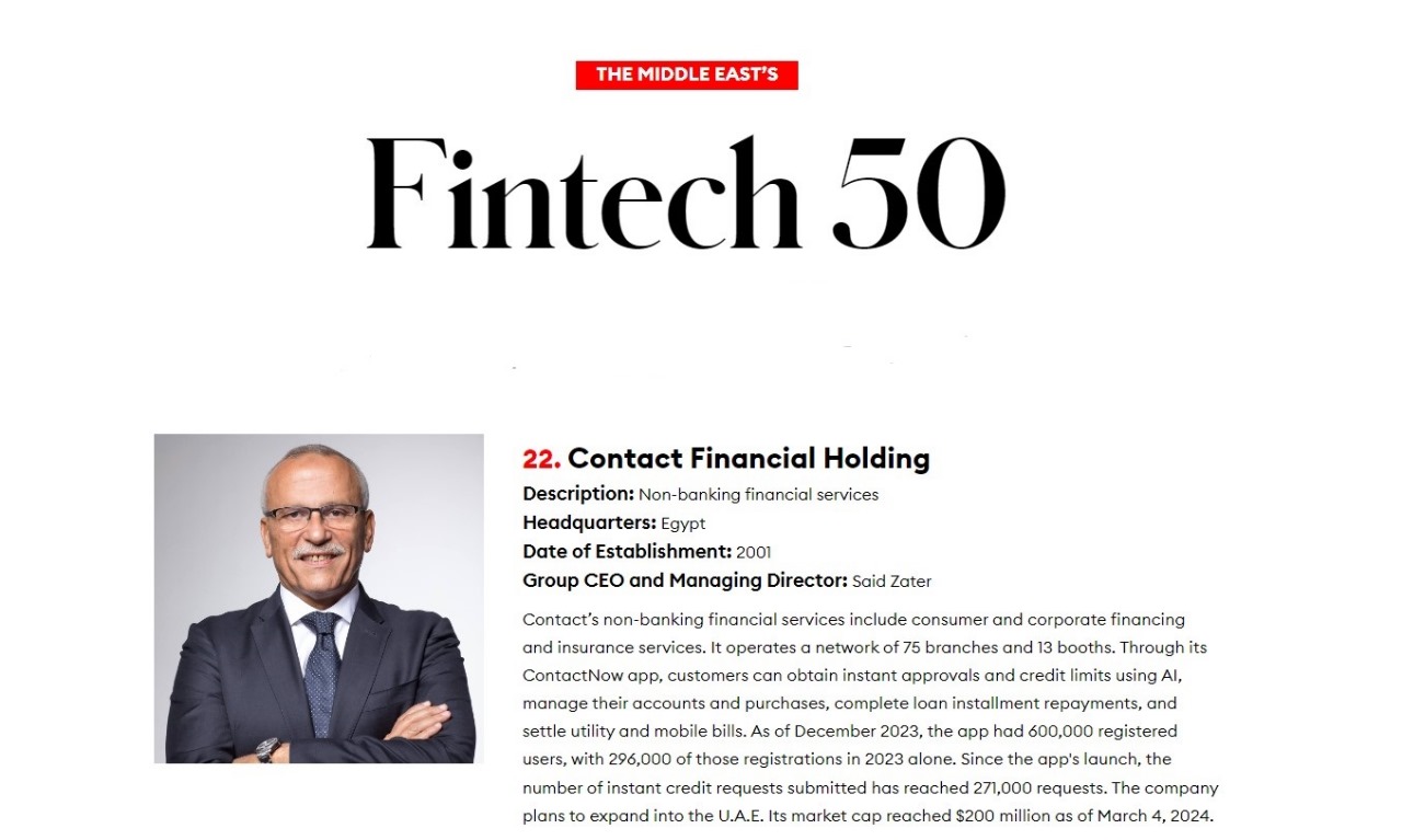 كشفت مجلة "فوربس الشرق الأوسط" عن أقوي ٥٠ شركة تكنولوجيا مالية بالشرق الأوسط وتصدرت مجموعة "كونتكت المالية القابضة " تصنيف المجلة الأوسع إنتشارا حيث سلطت الضوء علي الشركة وأنشطتها، ويُعد هذا التصنيف شهادة على الدور البارز الذي تقوم به الشركة في تقديم حلول مالية مبتكرة وغير تقليدية.