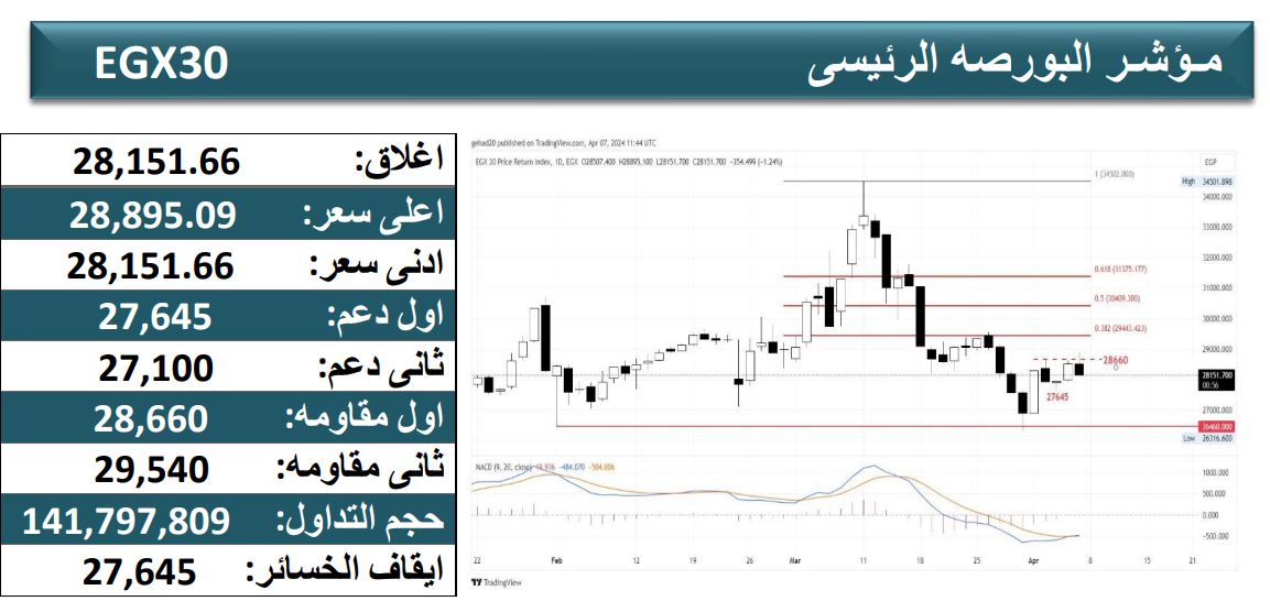 التحليل الفني لمؤشرات البورصة المصرية الإثنين 8 أبريل 2024