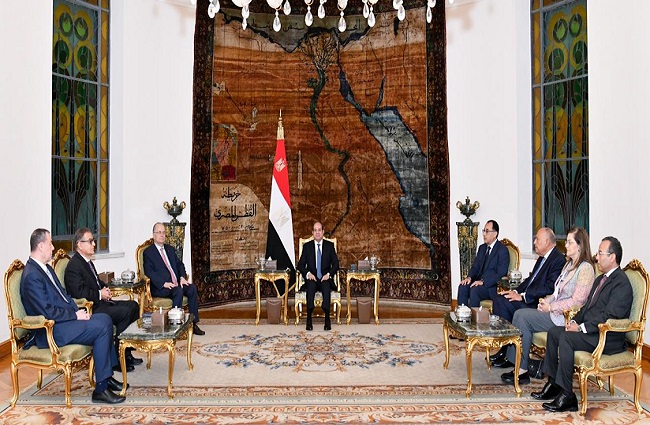 استقبل الرئيس عبد الفتاح السيسي، اليوم، رئيس الوزراء الفلسطيني الدكتور محمد مصطفى والوفد المرافق له الذي يضم وائل زقوت وزير التخطيط، وذلك بحضور الدكتور مصطفى مدبولي رئيس مجلس الوزراء، وسامح شكري وزير الخارجية، والدكتورة هالة السعيد وزيرة التخطيط والتنمية الاقتصادية، بالإضافة إلى السفير دياب اللوح سفير دولة فلسطين بالقاهرة.