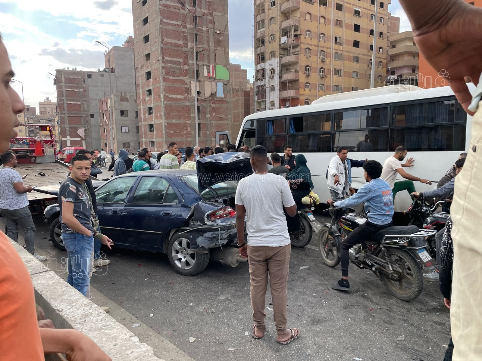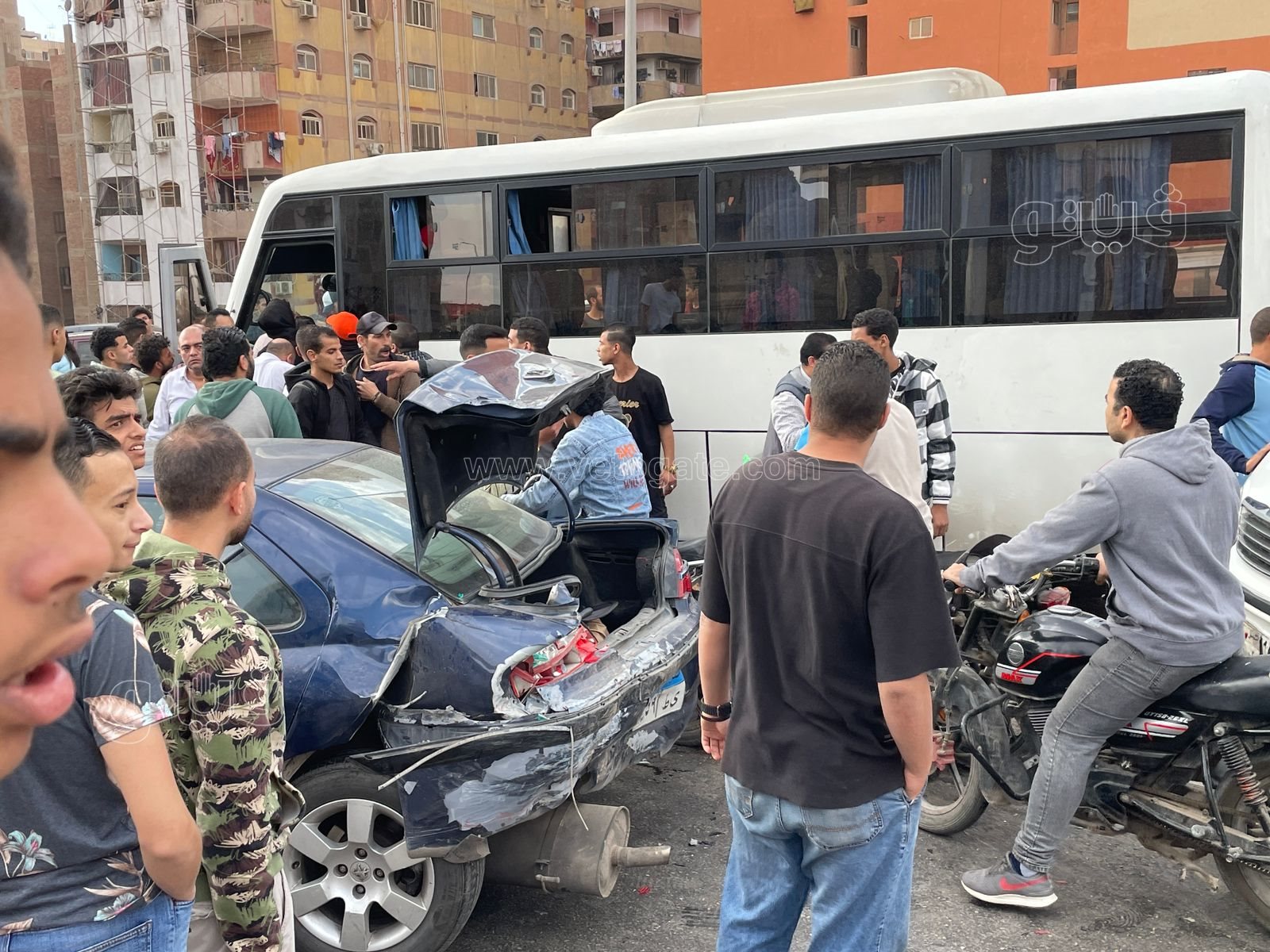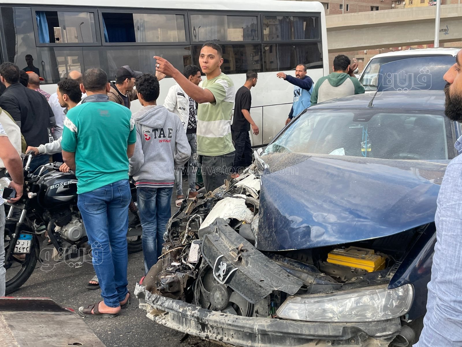 وتبين بالفحص إصابة شخصين نتيجة تصادم 4 سيارات من بينهم أتوبيس مينى باص المتسبب فى الحادث و3 سيارات ملاكى.