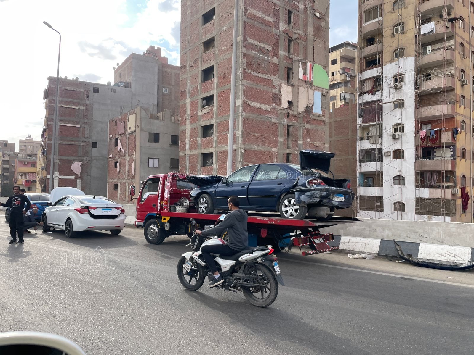 حادث تصادم بين 4 سيارات أعلى الطريق الدائرى