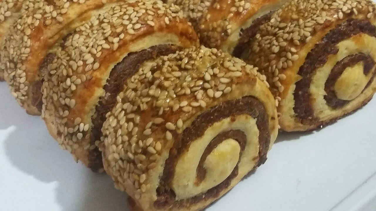 - يتم التشكيل بفرد العجين ويتم وضع الحشو على شكل أصابع.