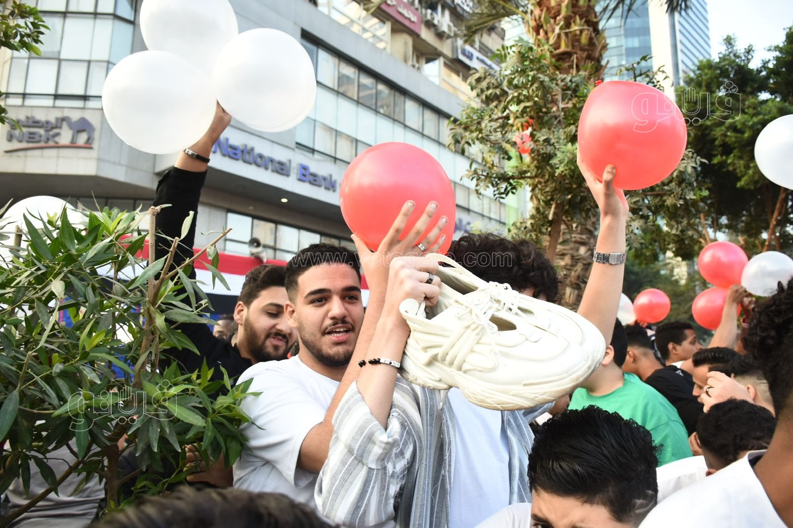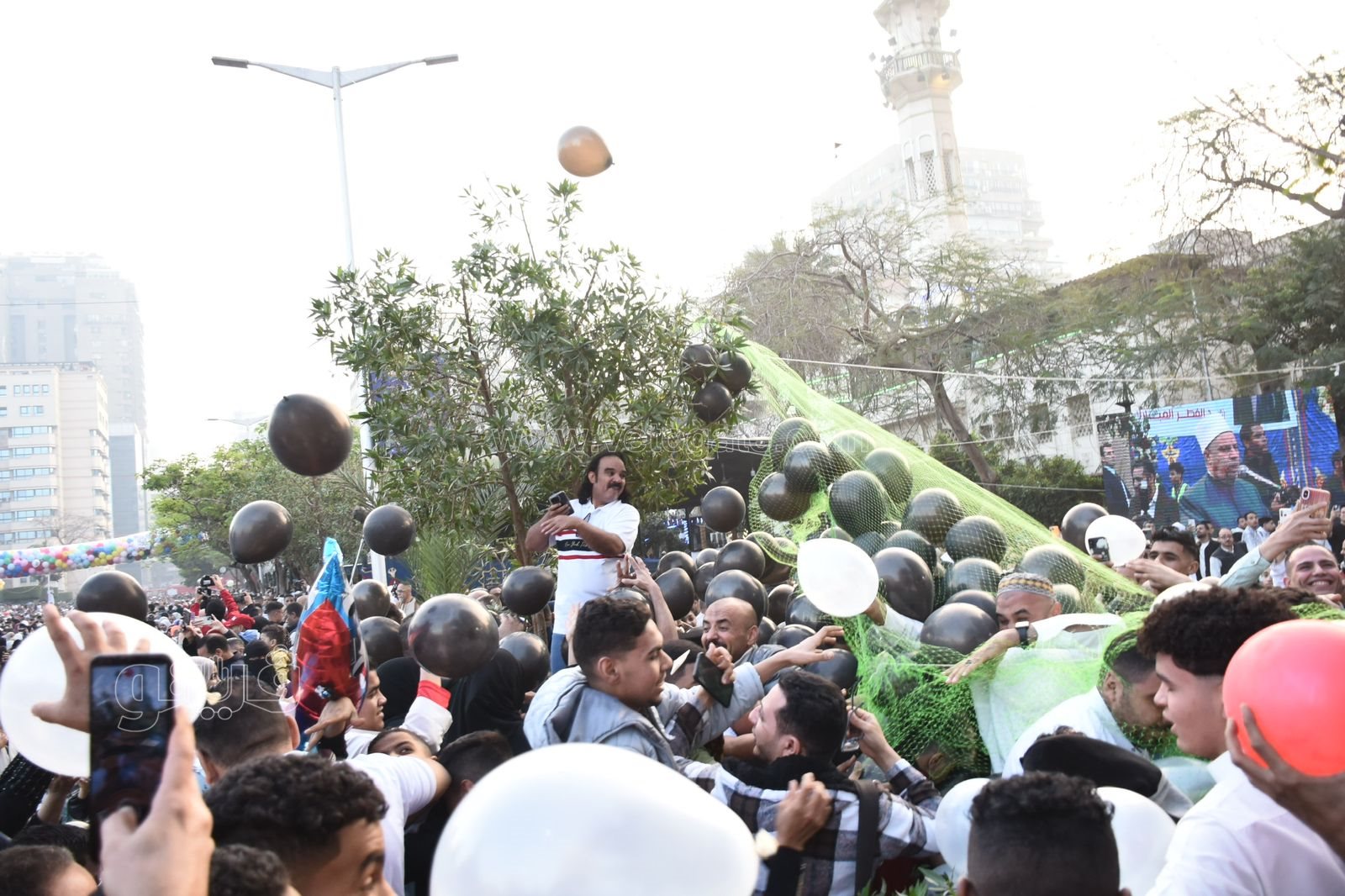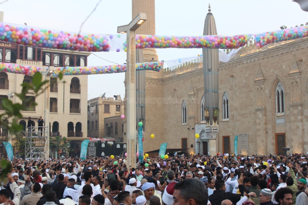 إلقاء البلالين على المصلين بالحسين ومصطفى محمود احتفالا بالعيد (فيديو وصور)