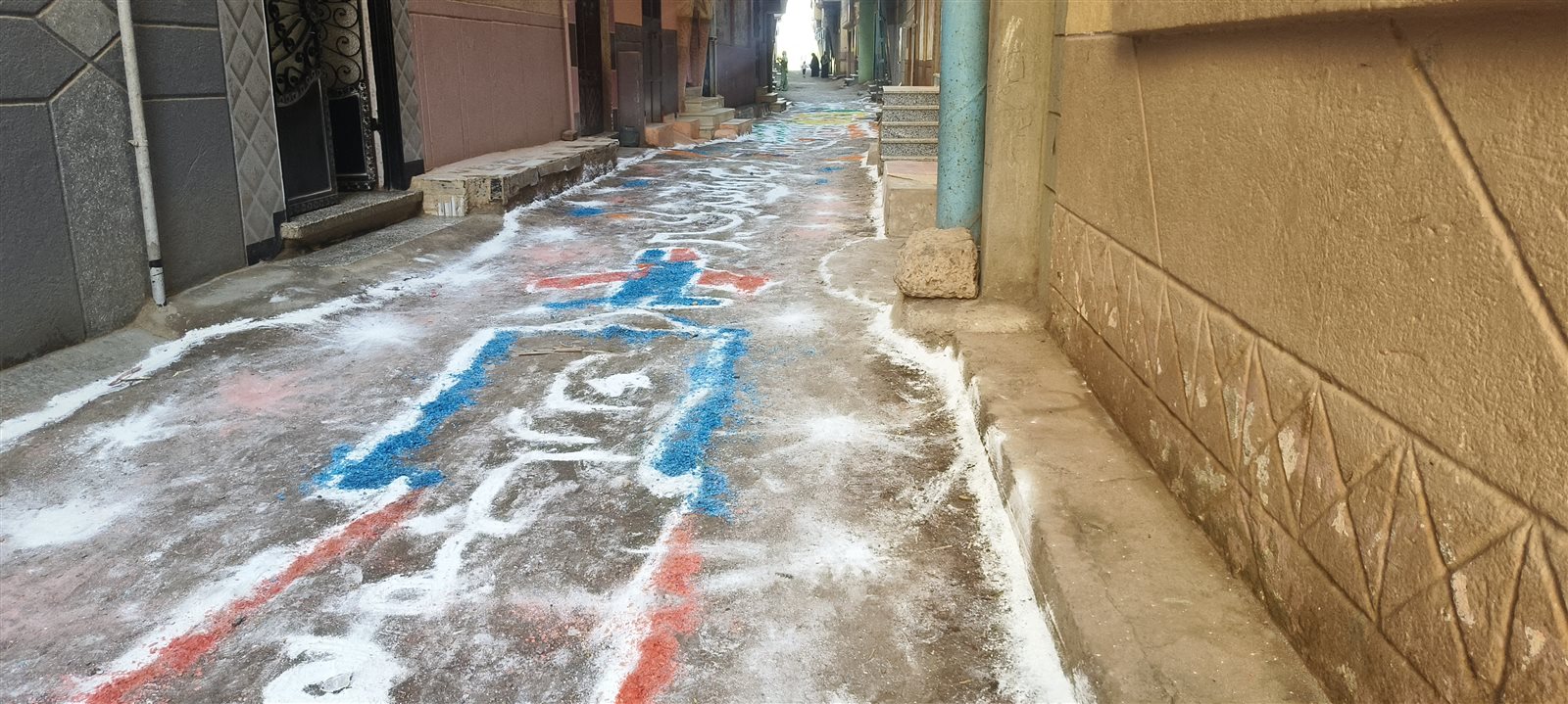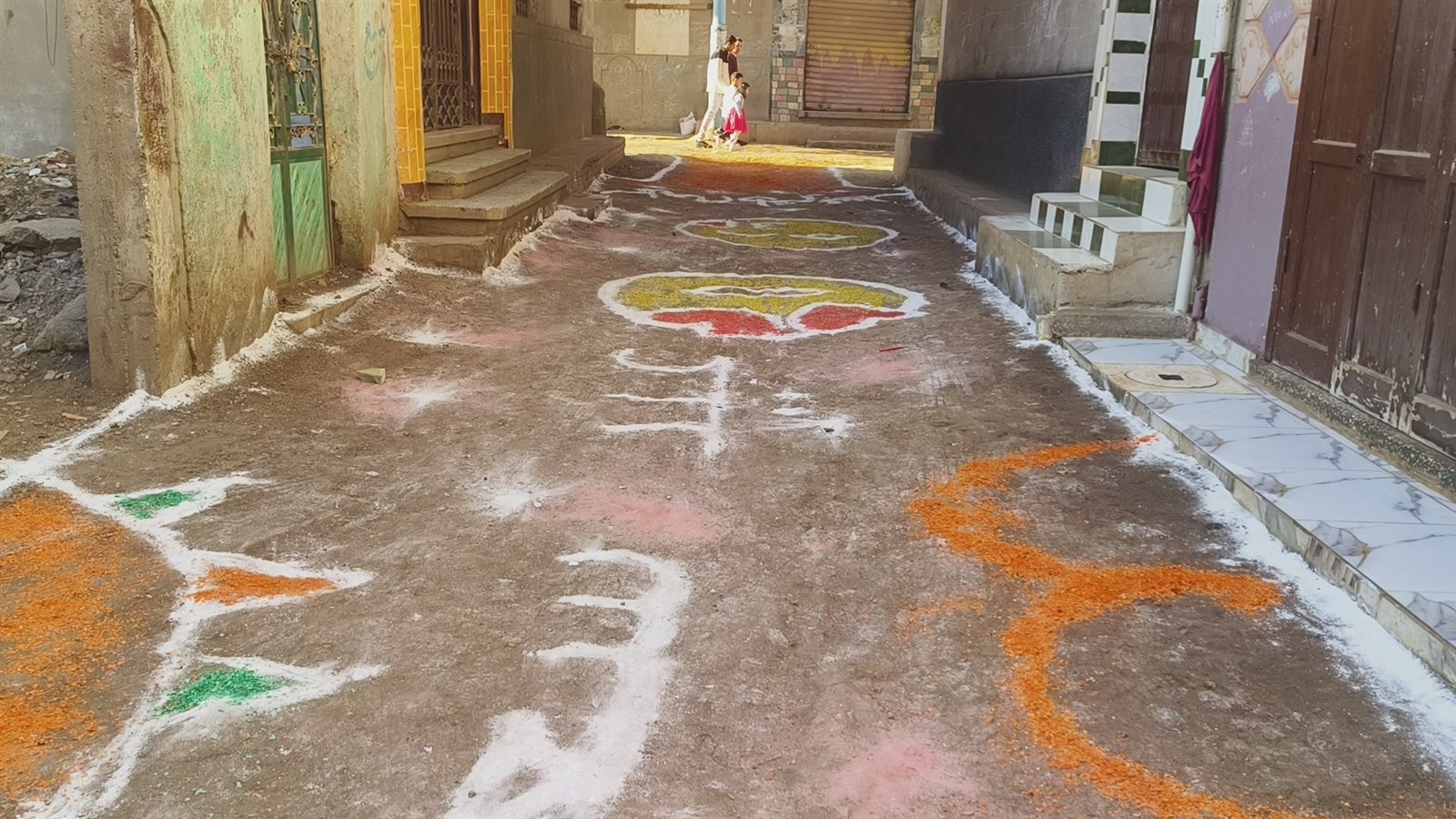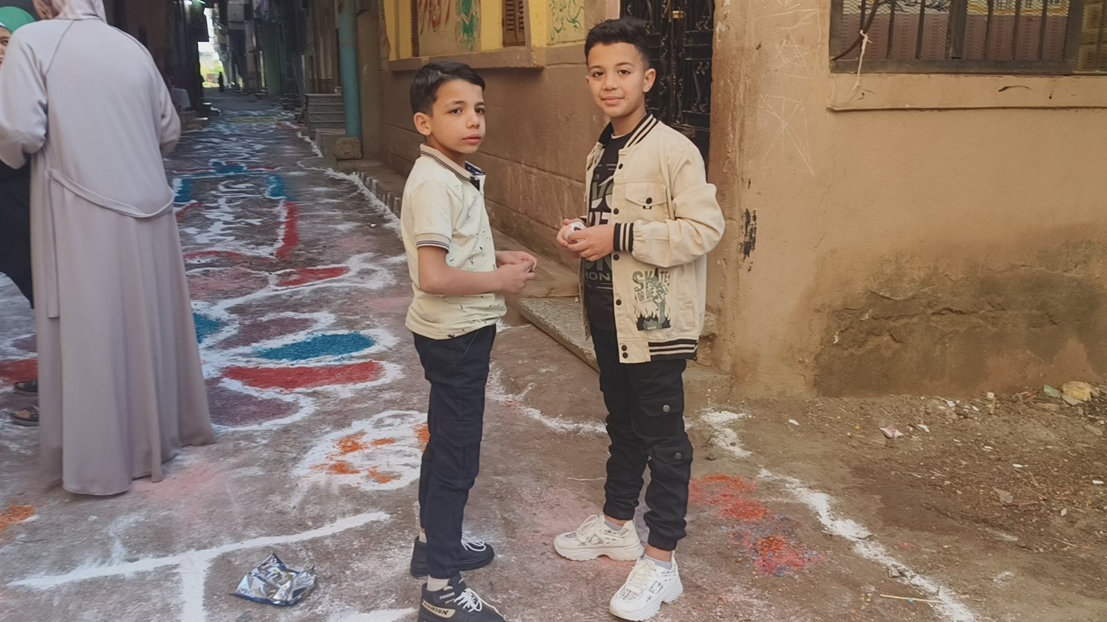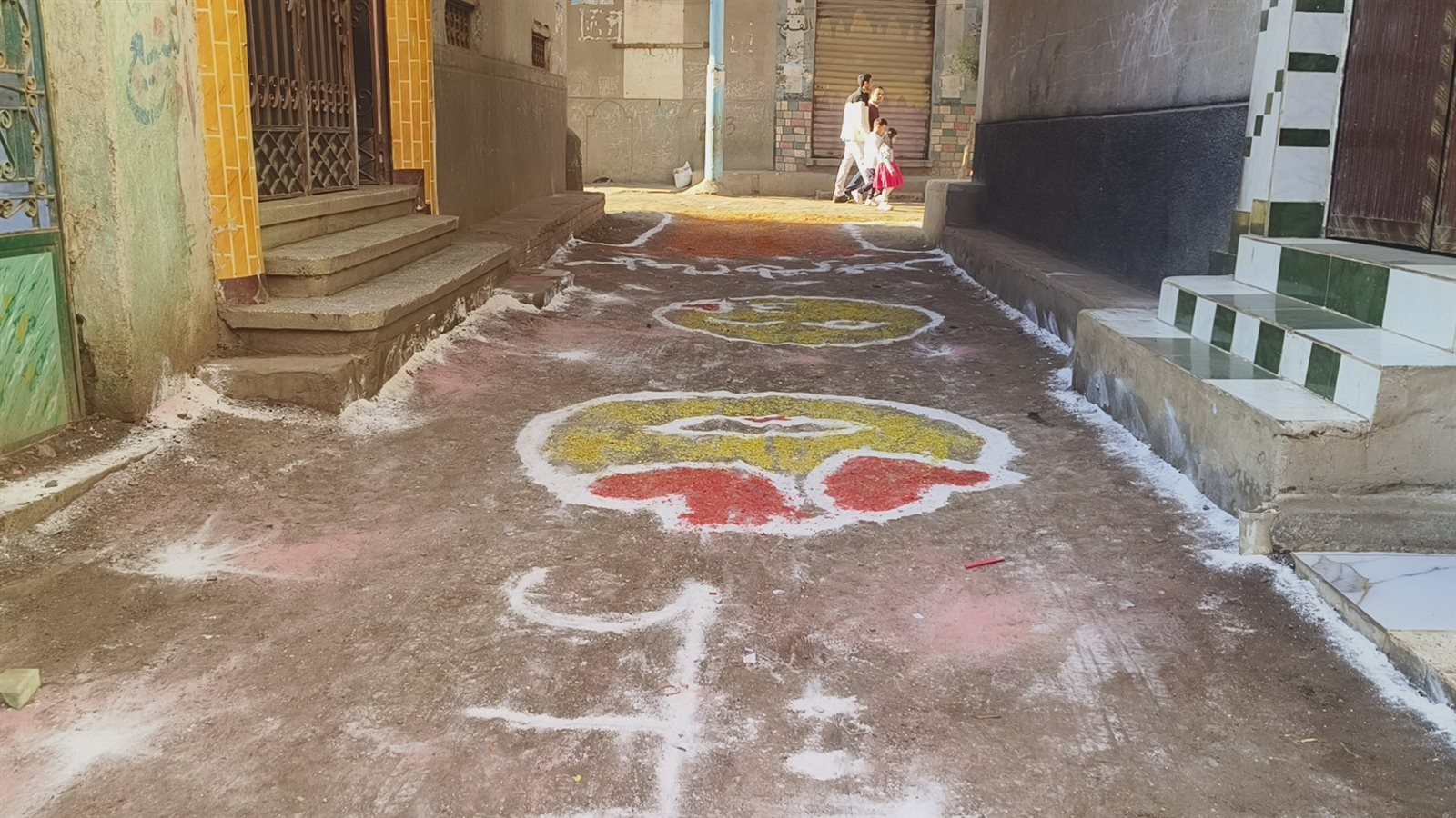 ورصدت فيتو البهجة بالشوارع التي خيم عليها الزينة بالألوان المبهجة، واكتست الأرض بالألوان والرسومات وكلمات كل عام وانتم بخير وعيد سعيد.