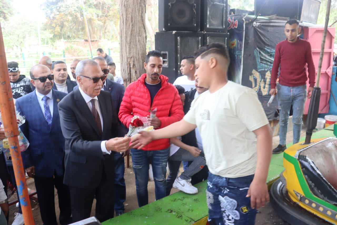 محافظ القليوبية يوزع الورود والهدايا على زوار القناطر الخيرية (صور)