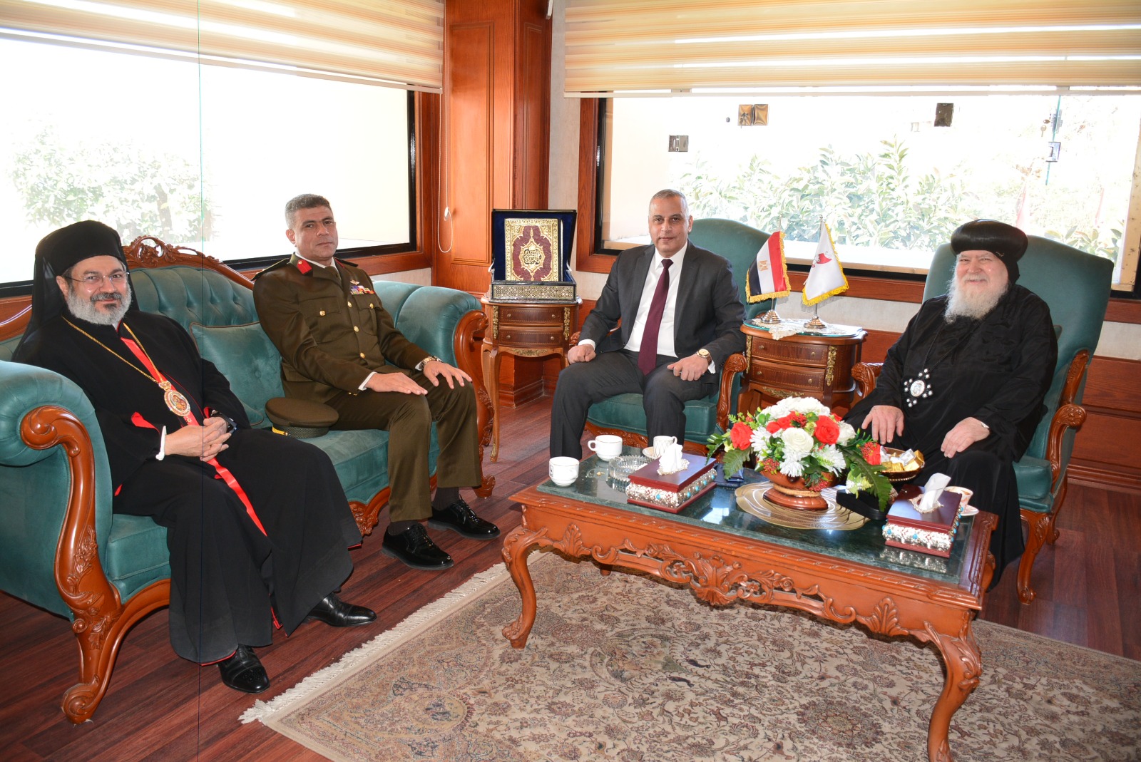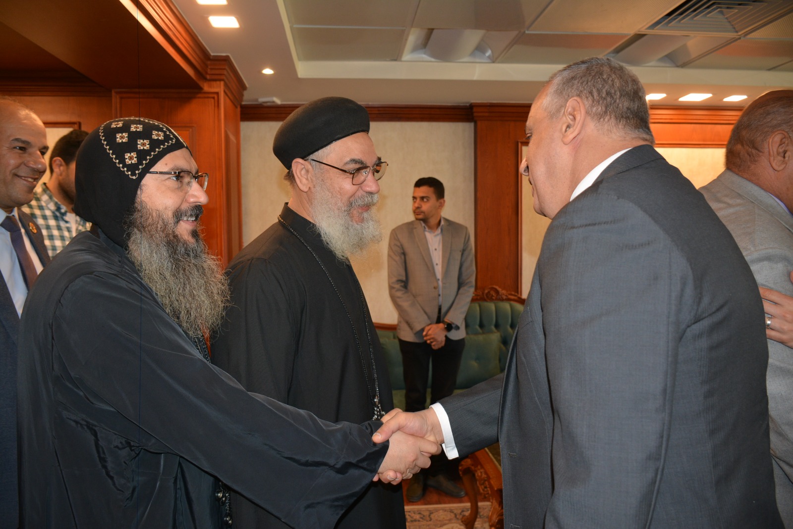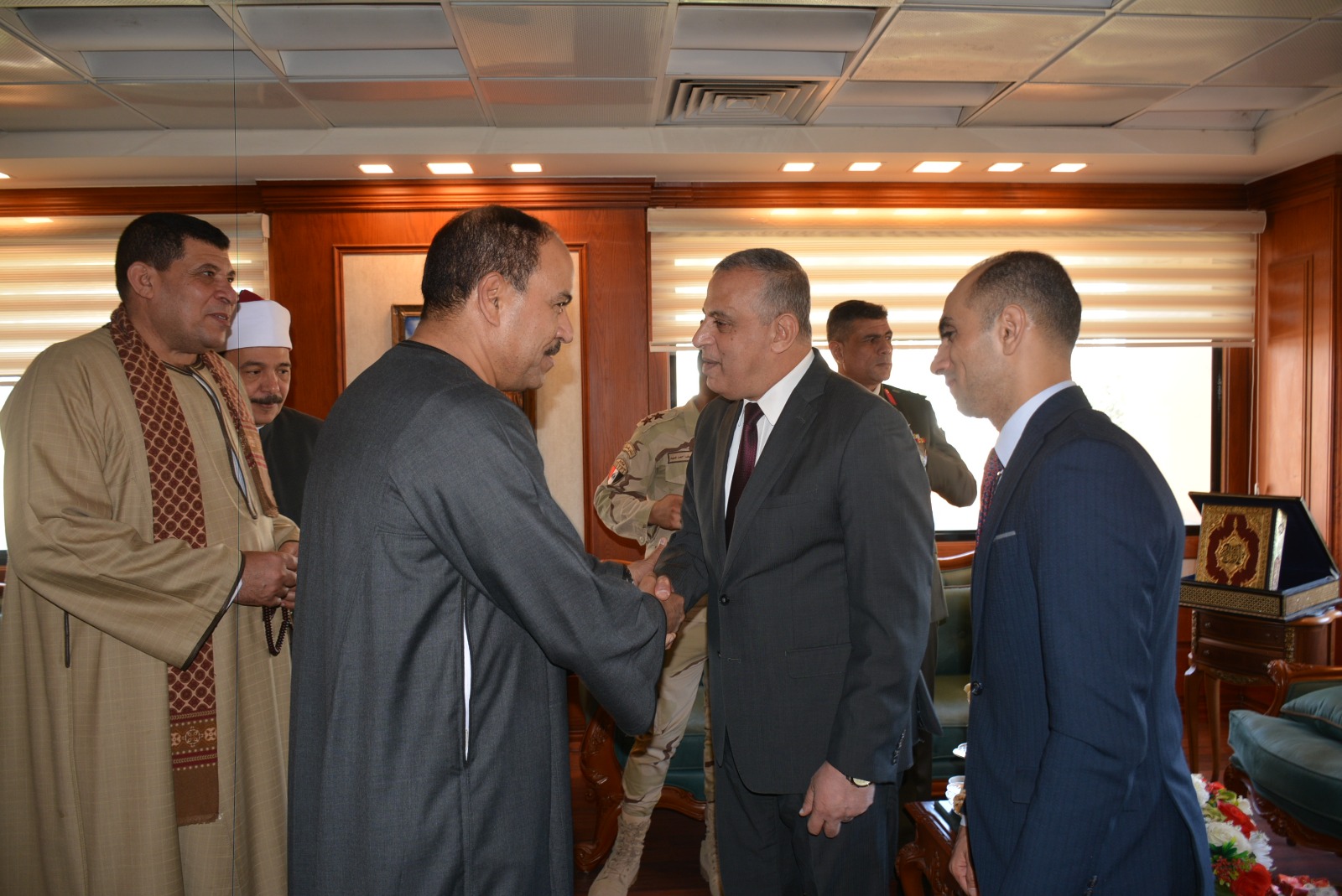واستقبل المحافظ اللواء محمد شرباش مدير أمن سوهاج، وعدد من القيادات الأمنية، والدكتور حسان النعماني رئيس الجامعة، وعددا من أعضاء هيئة التدريس، وعددا من أعضاء مجلسي النواب والشيوخ، والصحفيين، والإعلاميين، والتنفيذيين من رؤساء المدن ووكلاء الوزارات ورؤساء المصالح الحكومية، ورجال الدين الإسلامي والمسيحي، وممثلي الأحزاب السياسية، والحركات الشبابية، والشخصيات العامة، وأهالي سوهاج في جو يسوده الحب، والمودة، وبهجة العيد.