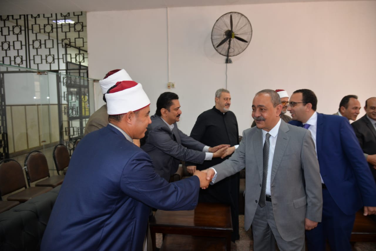 كما شارك بالحضور لتقديم التهنئة بالعيد قيادات مديرية الأوقاف بقيادة الشيخ إسماعيل أحمد إسماعيل وكيل وزارة الأوقاف، ممثلي الأزهر الشريف وبيت العائلة المصرية، رؤساء الأحياء، ومديري العموم لمختلف مديريات الخدمات، والقيادات التنفيذية.
