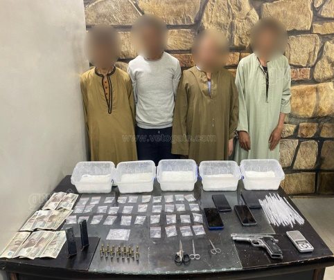 وعقب تقنين الإجراءات تم استهدافهم وضبطهم ضبط 4 عناصر إجرامية "لثلاثة منهم معلومات جنائية"؛ بدائرة مركز شرطة ديروط بأسيوط، وبحوزتهم (5 كيلو جرام لمخدر الآيس "الشابو" – طبنجة – 2 خزينة – عدد من الطلقات - سيارة - دراجة نارية "بدون لوحات" – 3 سلاح أبيض – ميزان حساس).