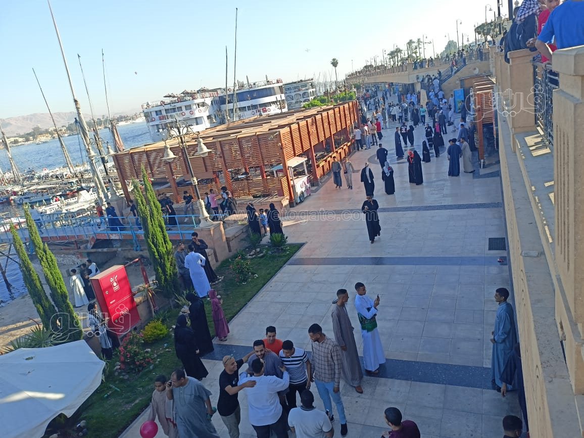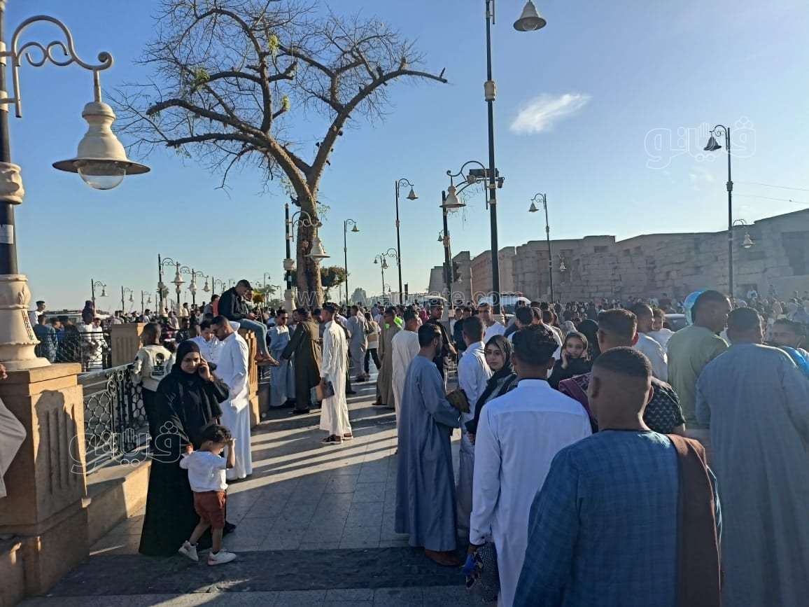 العيد فرحة، زحام شديد بكورنيش النيل بالأقصر في أول أيام عيد الفطر (فيديو وصور)