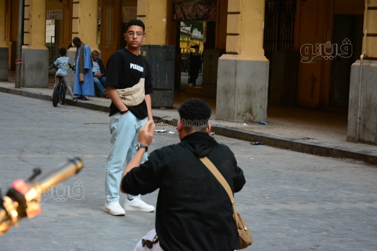 وحرص العشرات من المواطنين والشباب علي التقاط الصور التذكارية بمنطقة وسط البلد بمحافظة القاهرة، وذلك في أول أيام عيد الفطر المبارك اليوم الأربعاء.