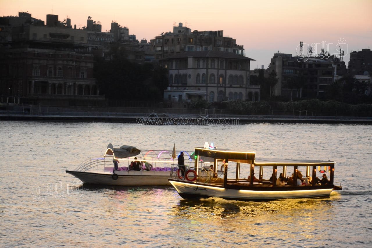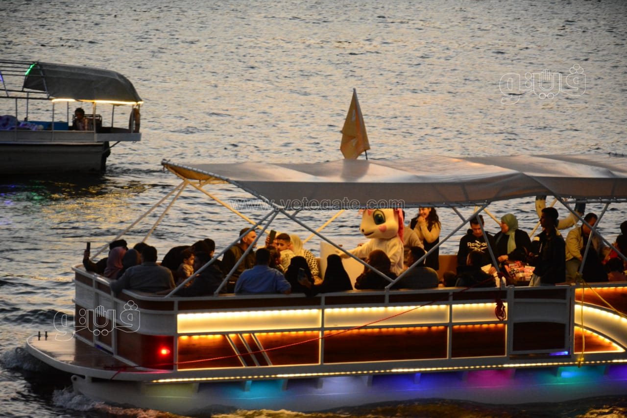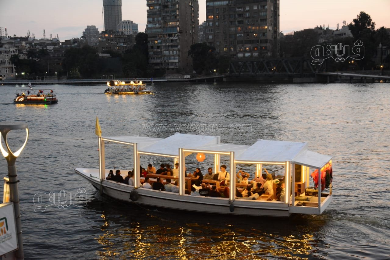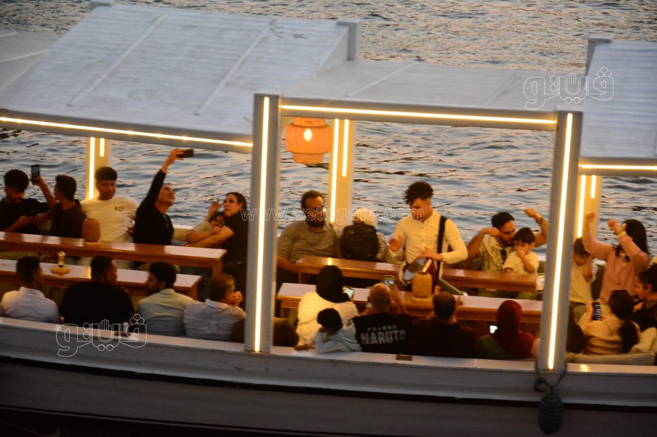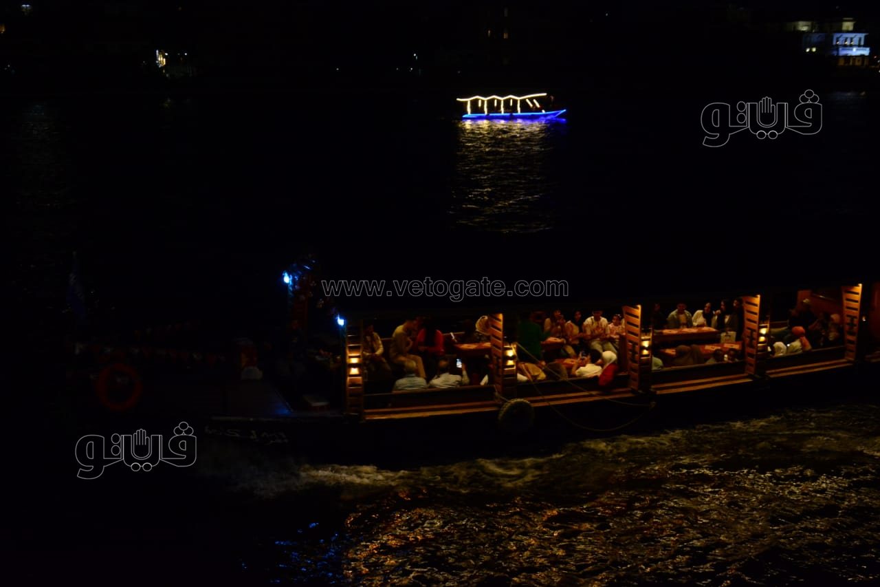 حيث توافد العشرات من المواطنين المصريين بمختلف أعمارهم على رحلات المراكب النيلية للاحتفال بعيد الفطر المبارك على ضفاف النيل.