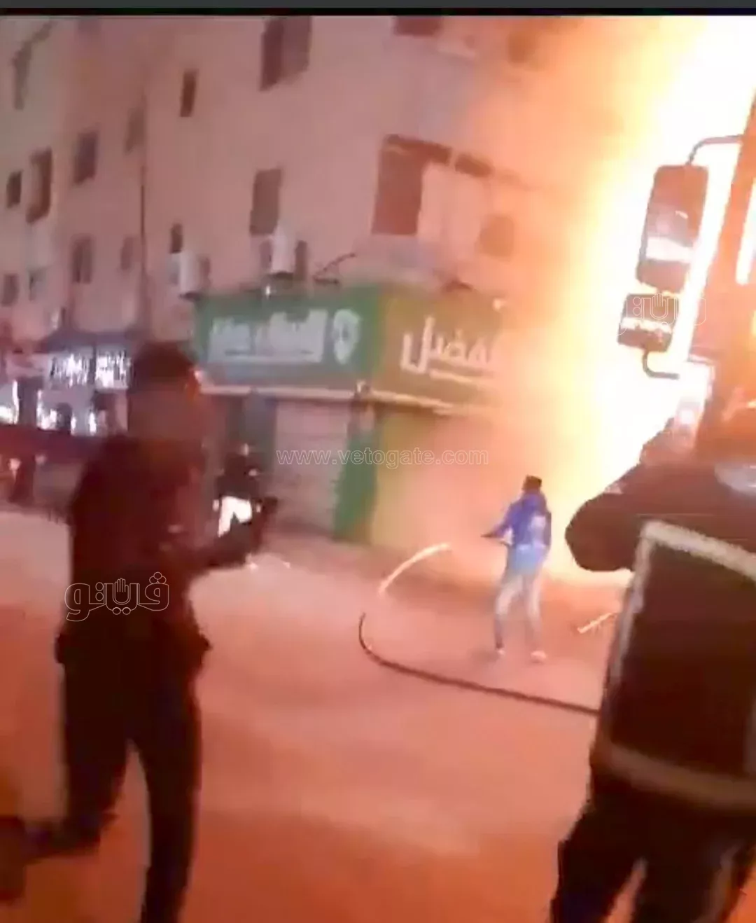 حريق هائل يلتهم محل بدل بالعجمي ويمتد إلى 4 محلات وإخلاء 3 عقارات دون إصابات بشرية (صور)