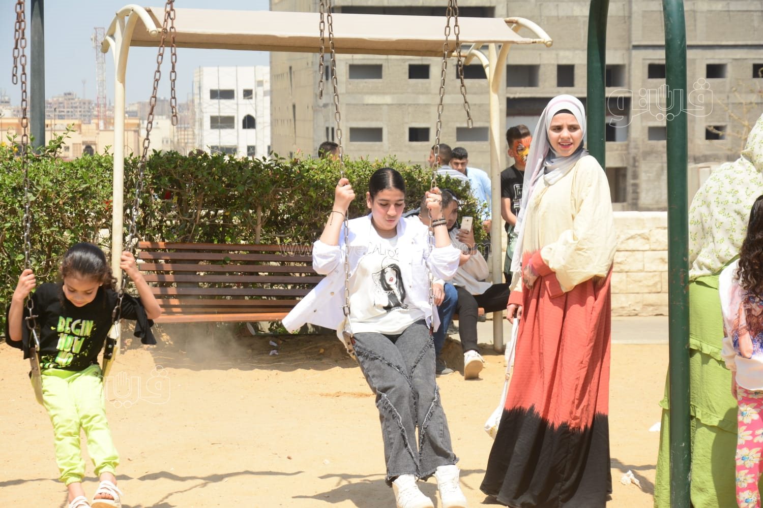بينما اتجه البعض الآخر من الزوار إلى الاحتفال عن طريق افتراش الأرض وتناول الطعام مع العائلة أثناء لعب الأطفال بثاني أيام العيد.