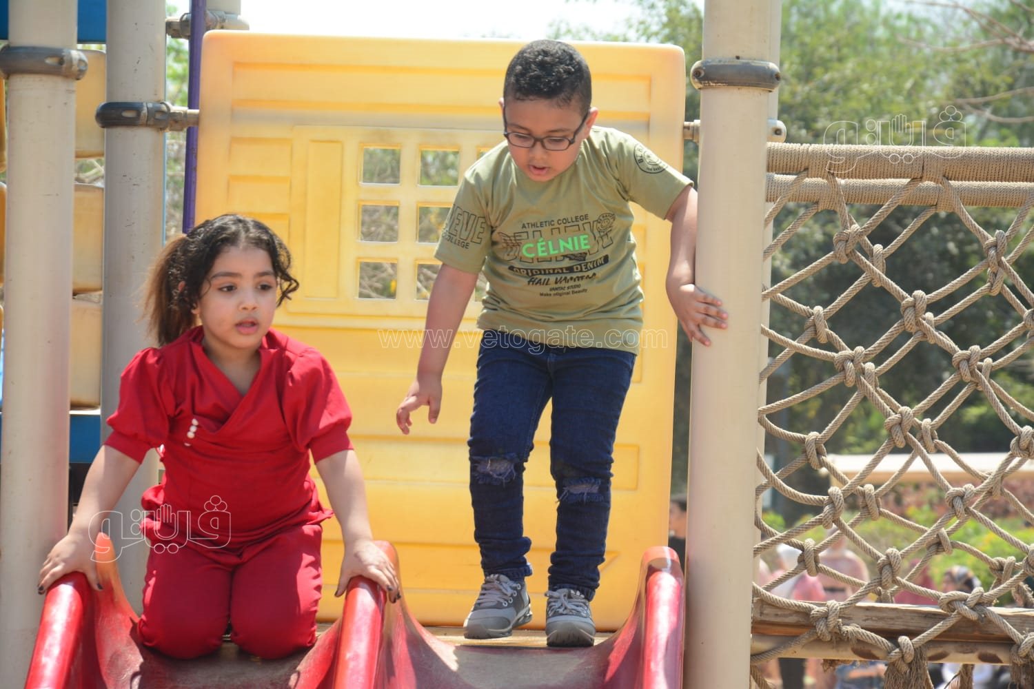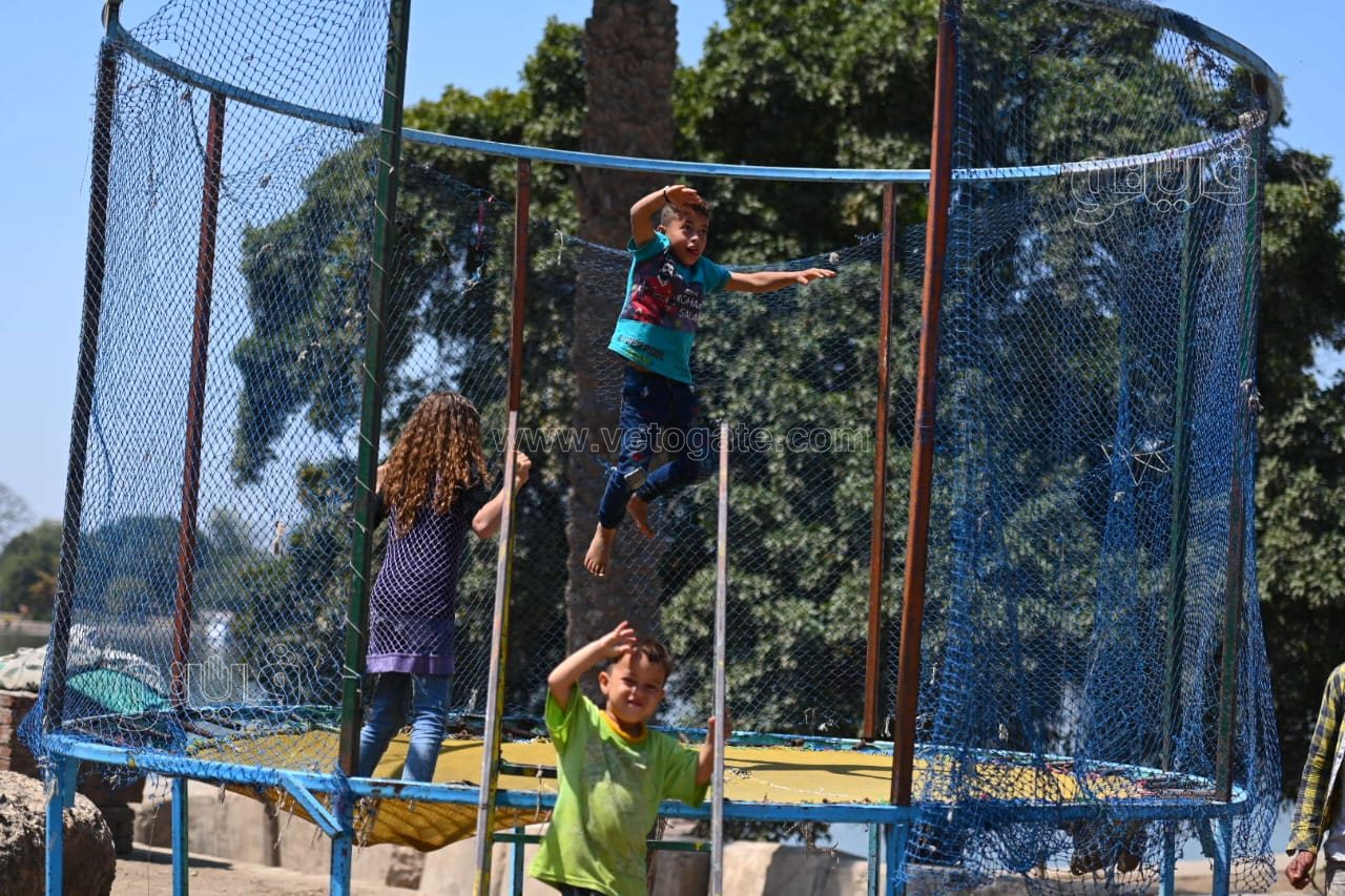 وتوافد عدد كبير من زوار الحديقة إلى منطقة الملاهي الموجودة بها ليستمتع الأطفال باللعب في الألعاب المختلفة.