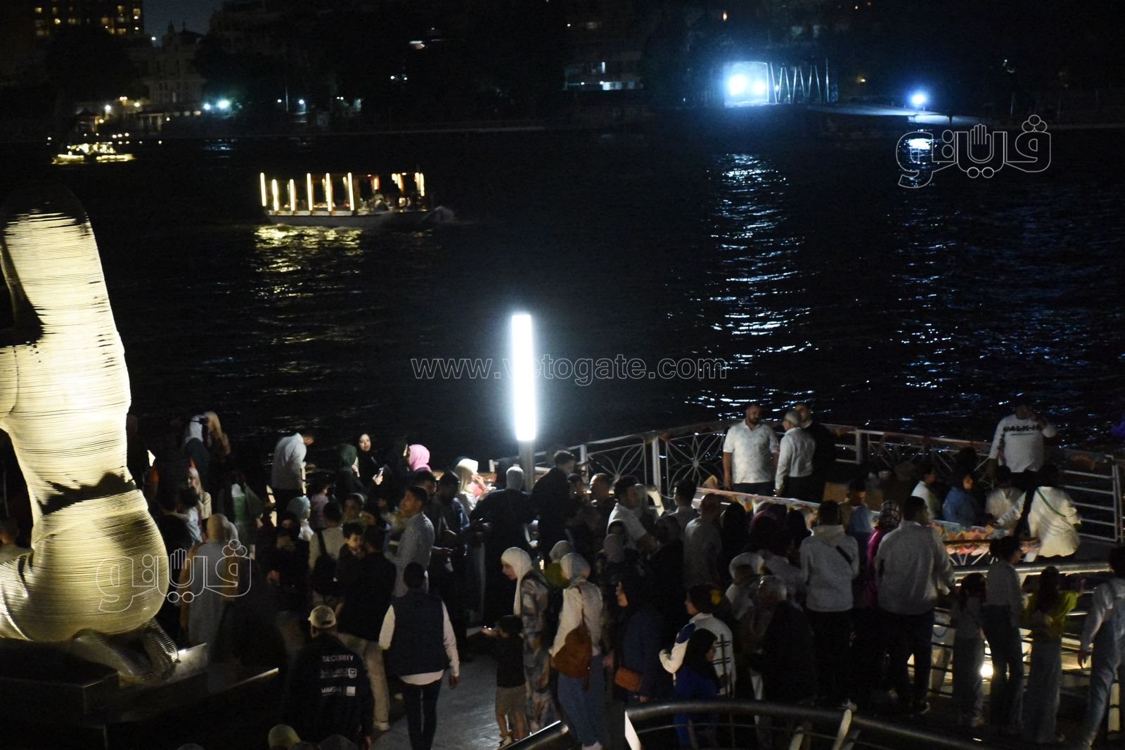 وأيضا على ضفاف النيل، اختطف المواطنين لحظات السعادة عبر المراكب التي زينت النيل بأضوائها اللافتة حتى آخر ساعات اليوم الخميس، حيث جذبت العديد من الأسر والعائلات.