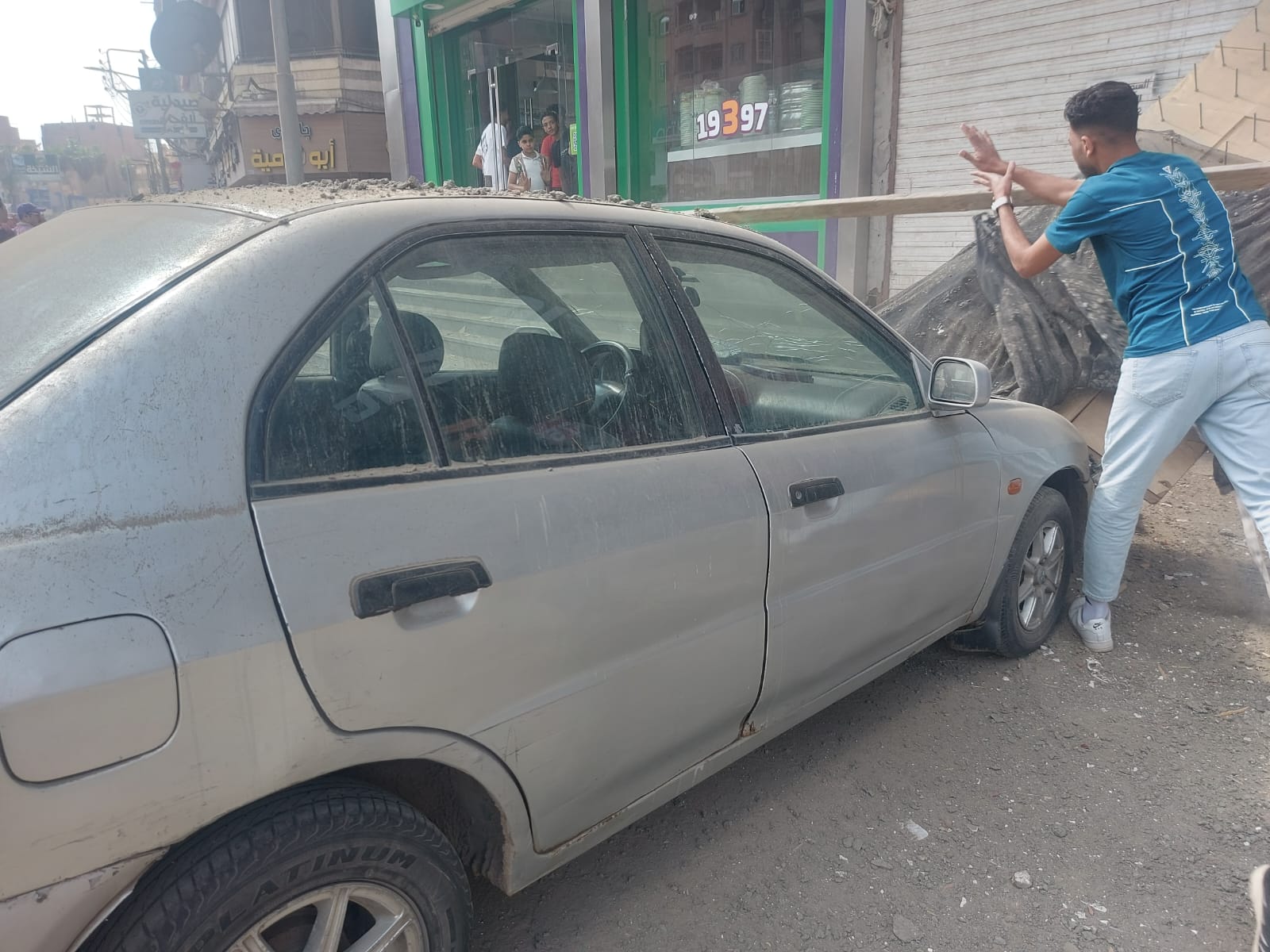 تهشم سيارة سقط عليها سقالة بعمارة سكنية تحت الإنشاء في الغربية (صور)