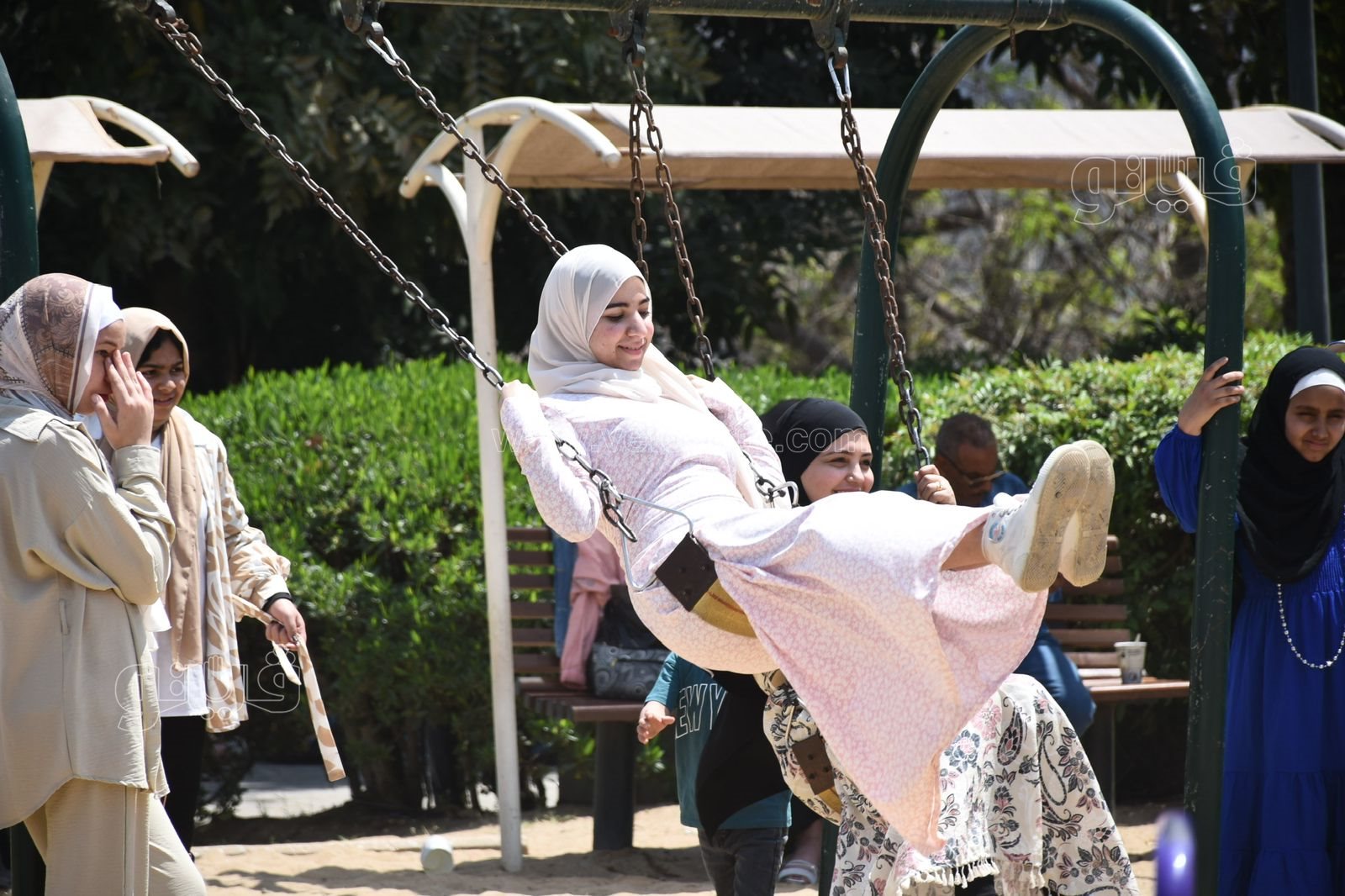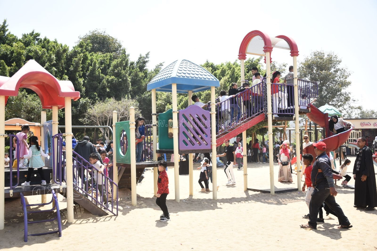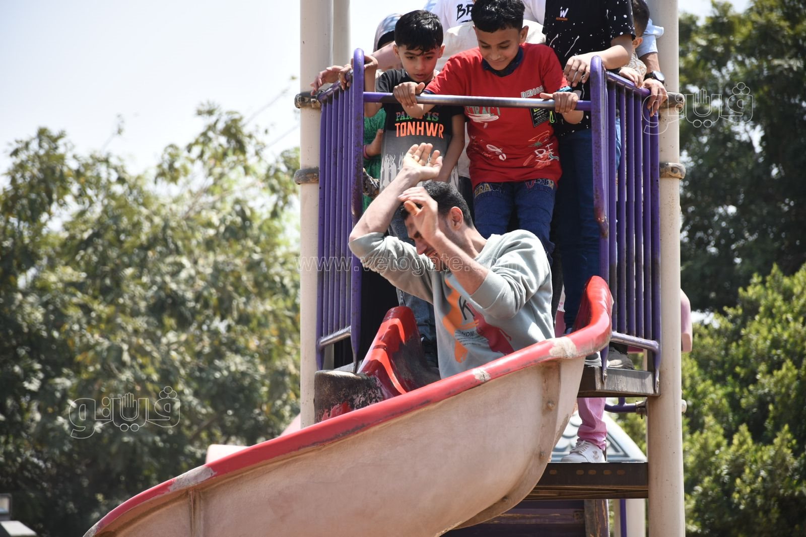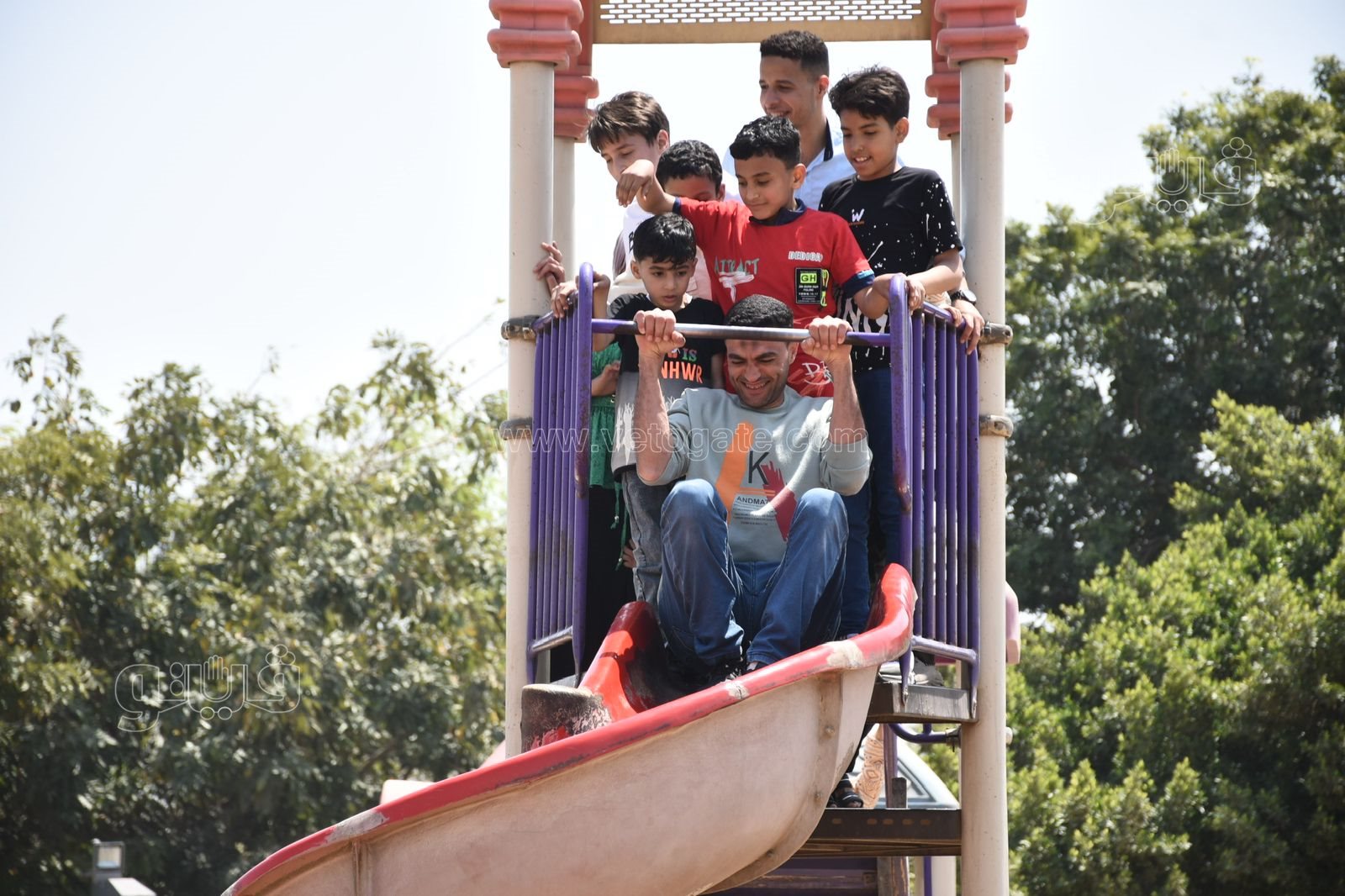 وتوافد عدد كبير من زوار الحديقة إلى منطقة الملاهي الموجودة بها ليستمتع الأطفال باللعب في الألعاب المختلفة.