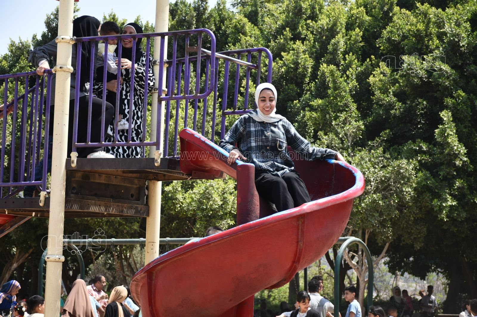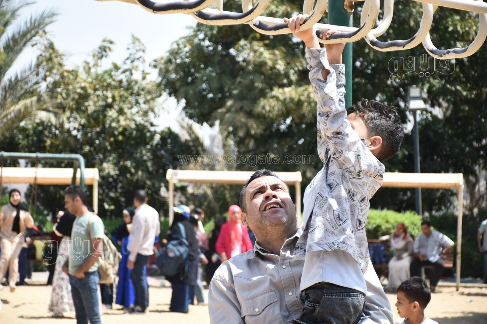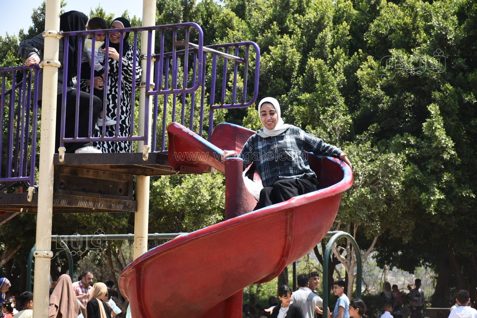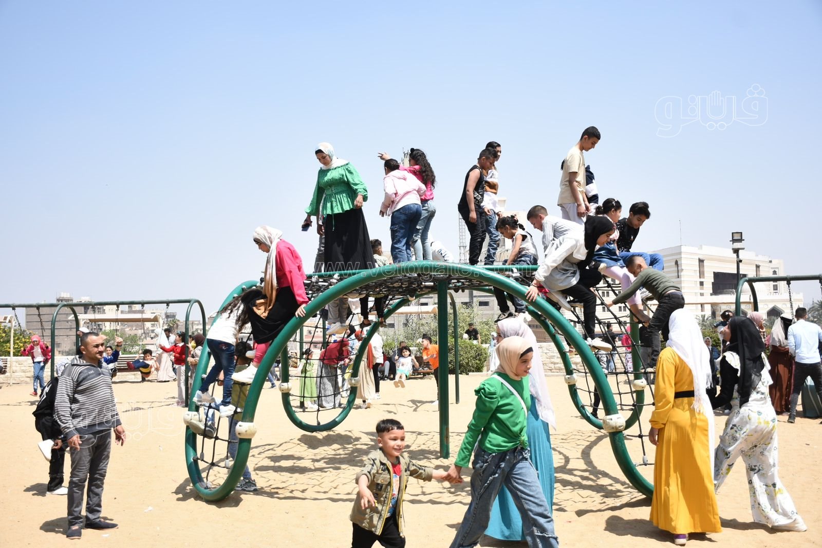 وتوافد عدد كبير من زوار الحديقة إلى منطقة الملاهي الموجودة بها ليستمتع الأطفال باللعب في الألعاب المختلفة.