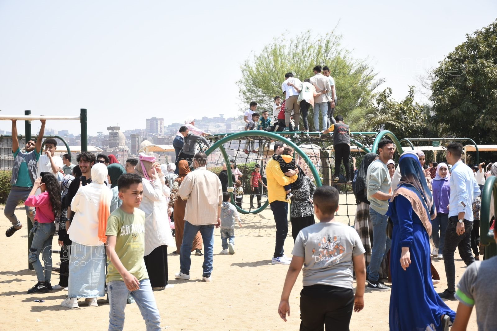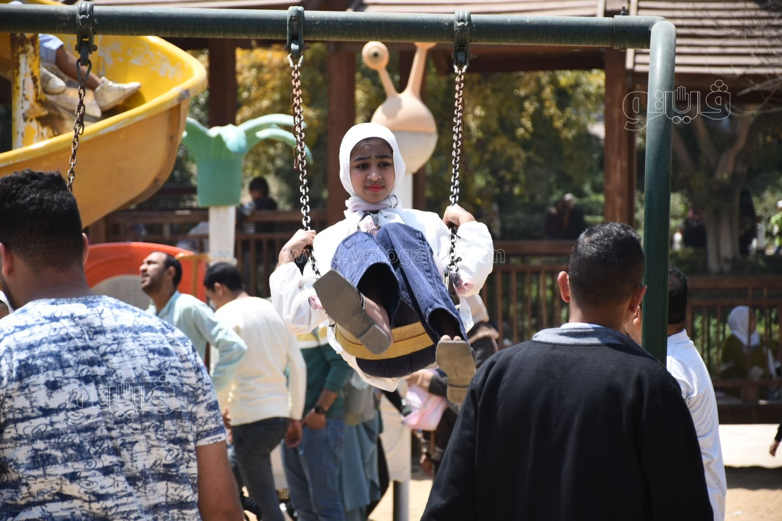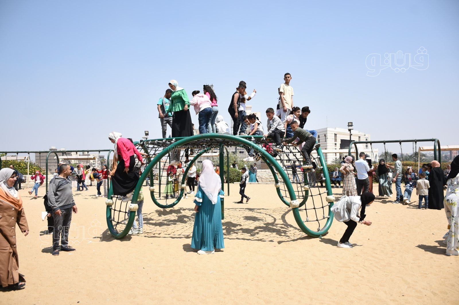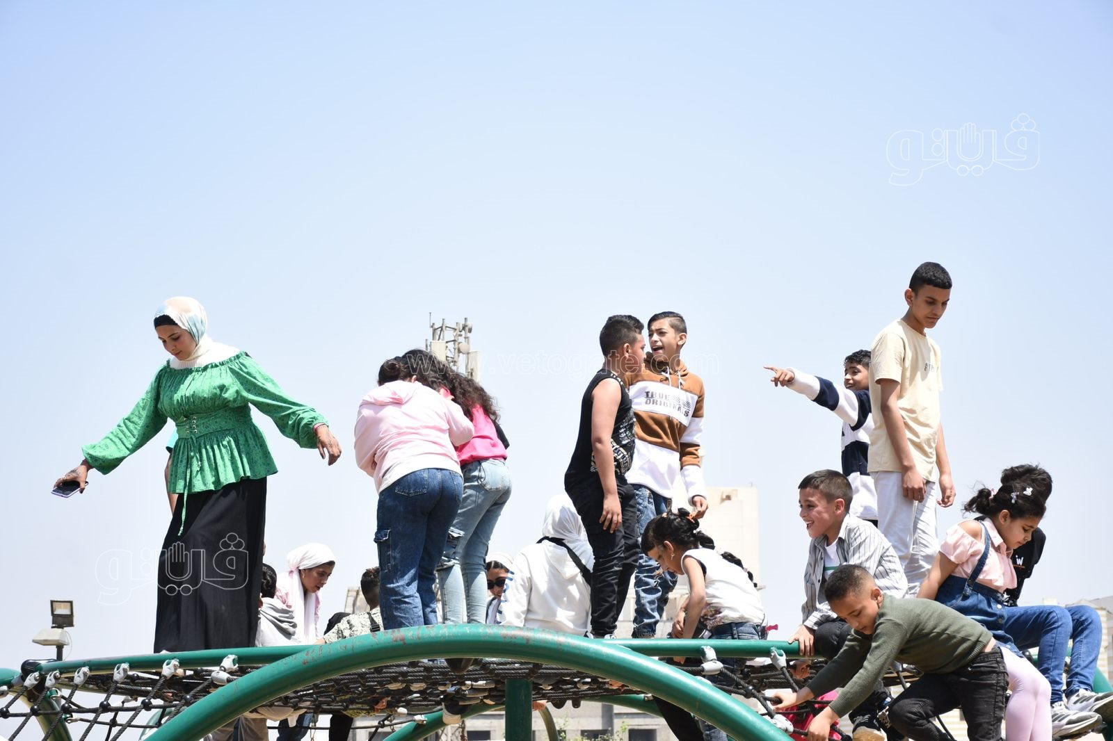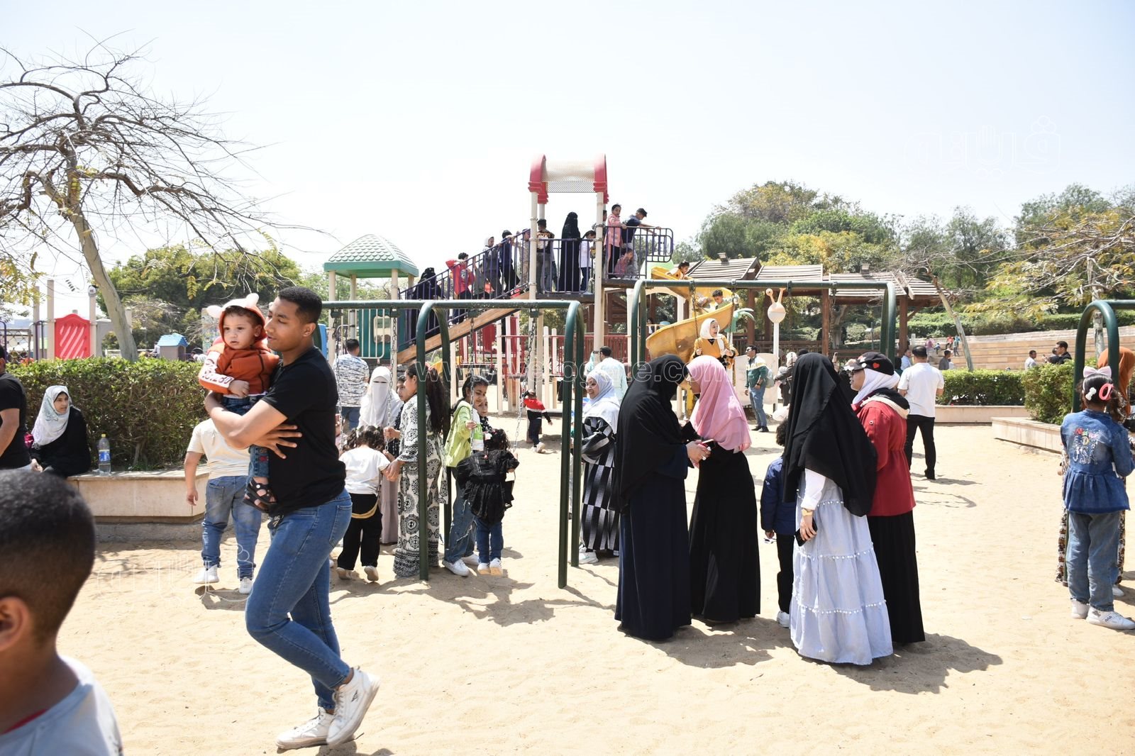 وتوافد عدد كبير من زوار الحديقة إلى منطقة الملاهي الموجودة بها ليستمتع الأطفال باللعب في الألعاب المختلفة.
