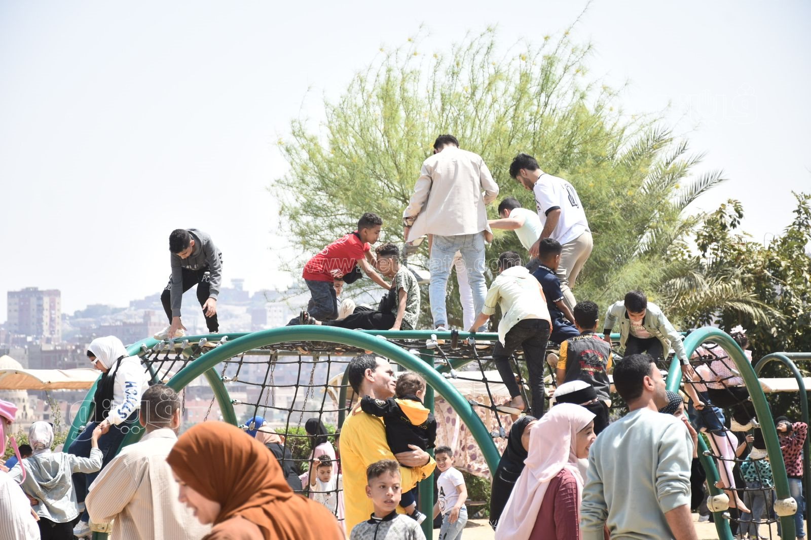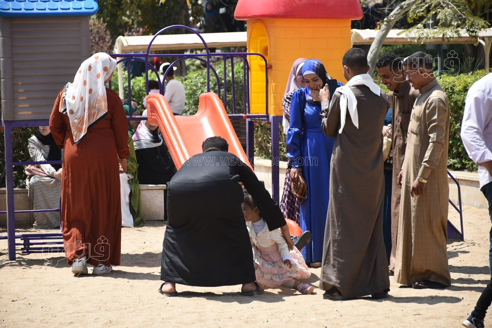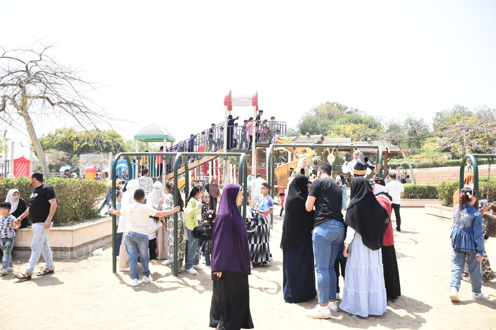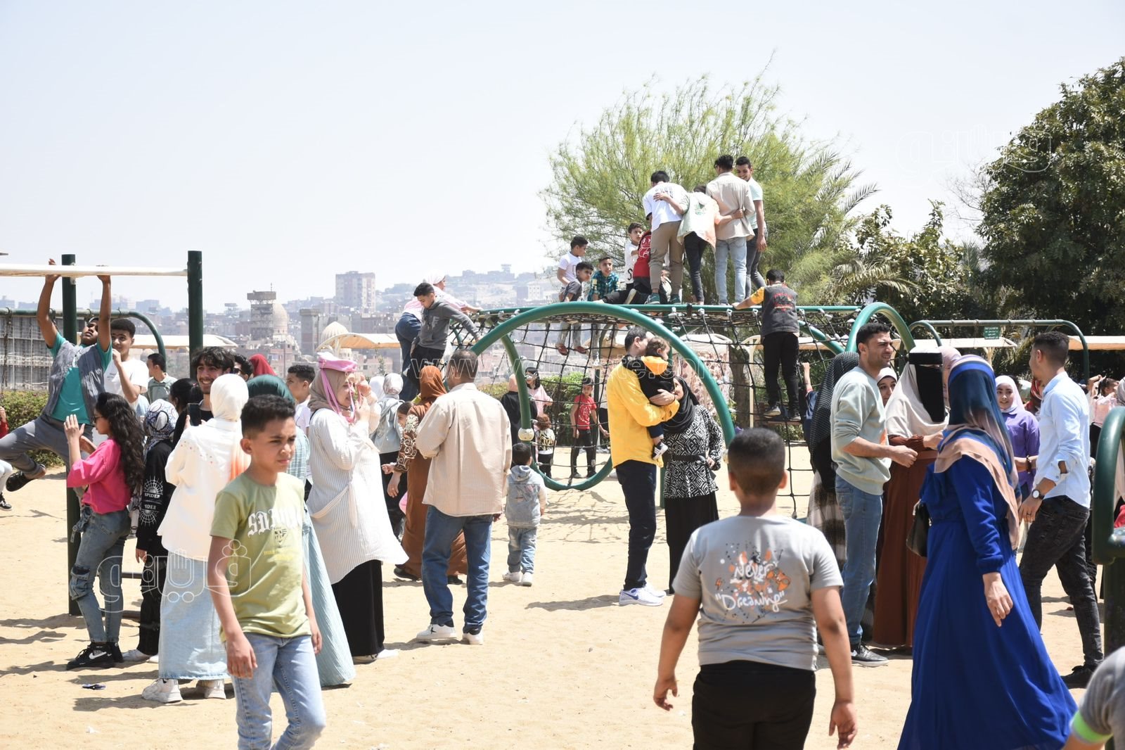 وتوافد عدد كبير من زوار الحديقة إلى منطقة الملاهي الموجودة بها ليستمتع الأطفال باللعب في الألعاب المختلفة.