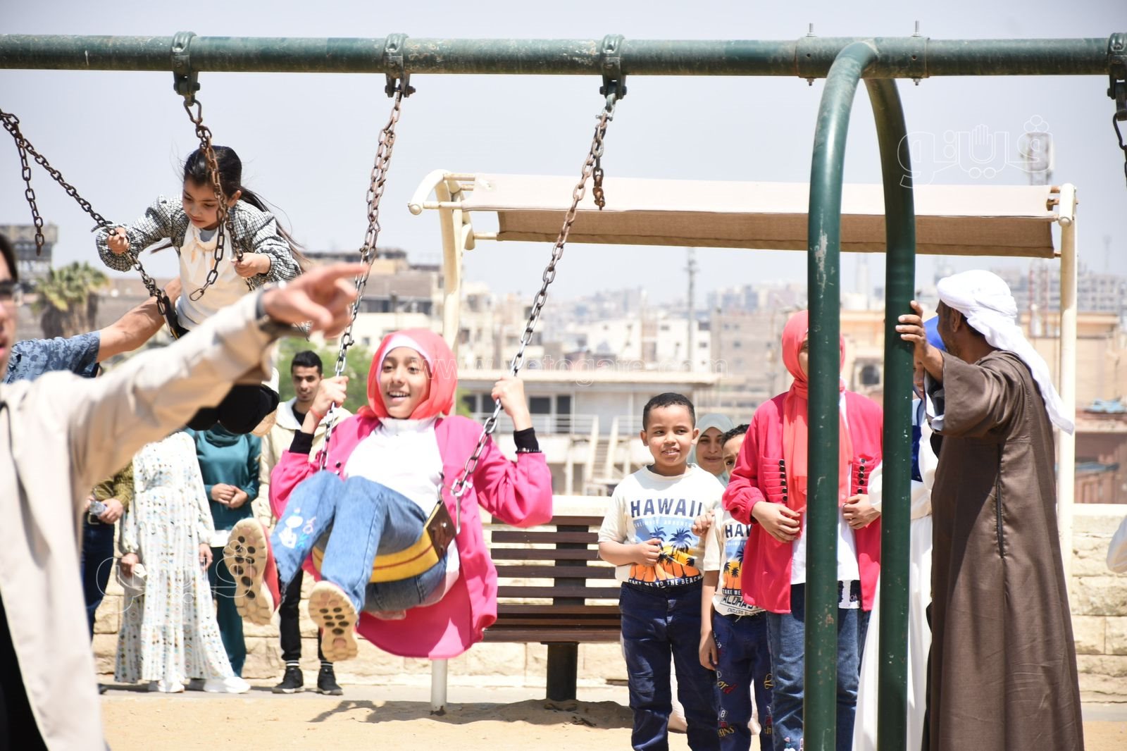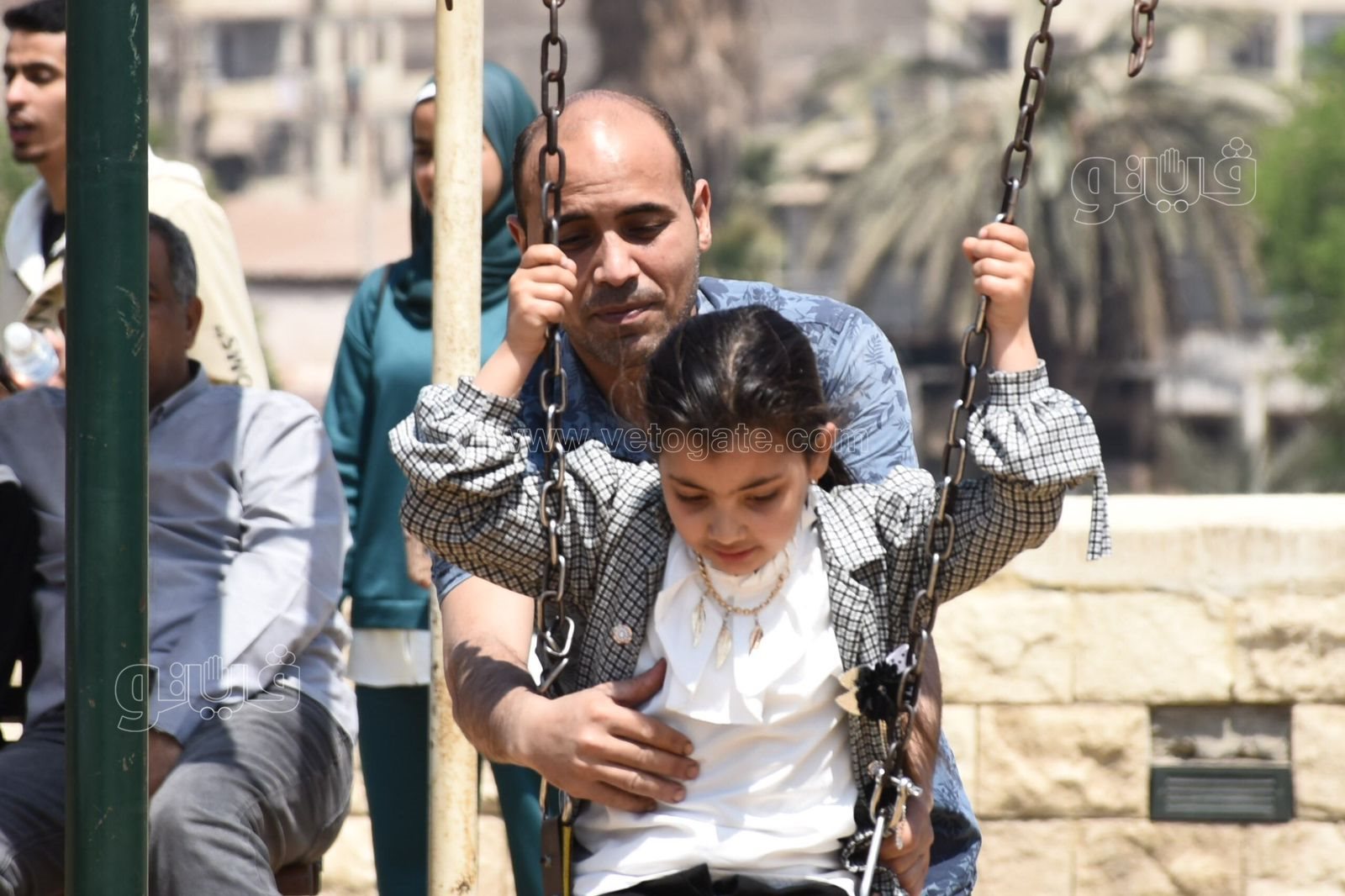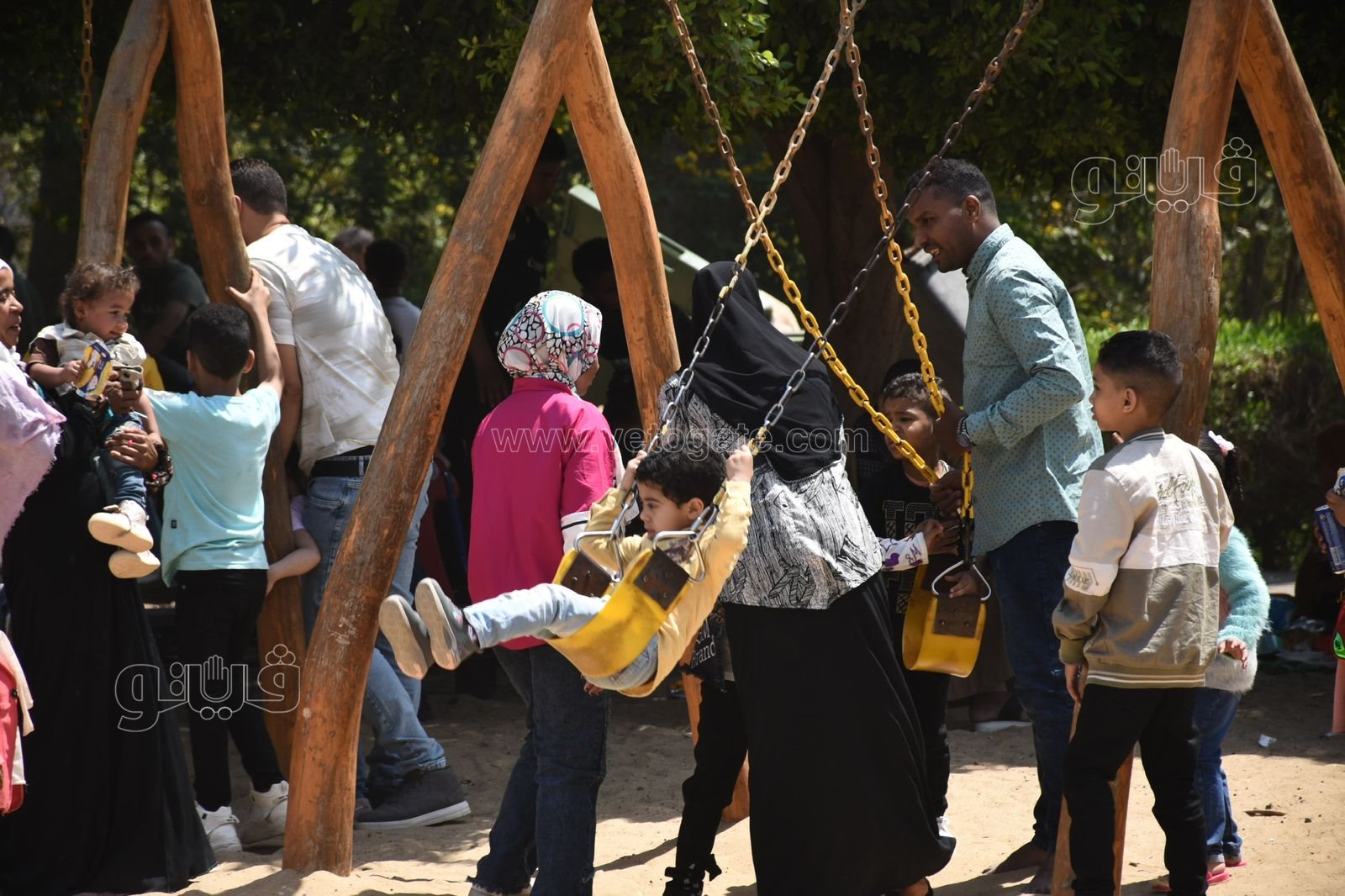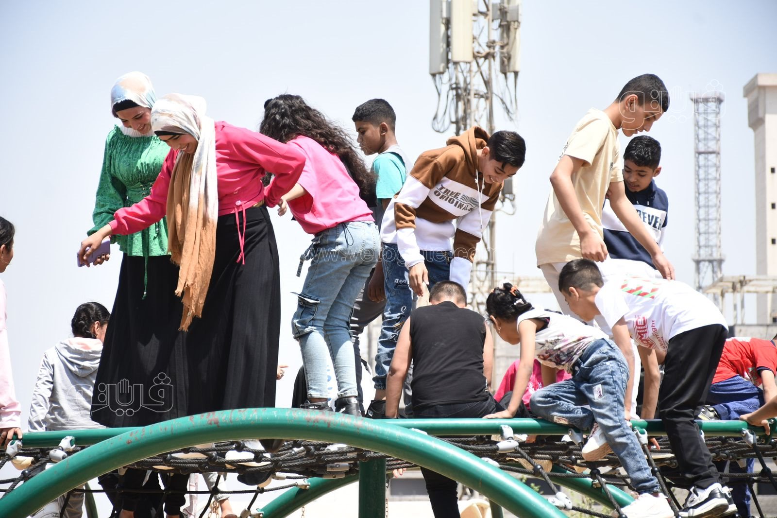 وتوافد عدد كبير من زوار الحديقة إلى منطقة الملاهي الموجودة بها ليستمتع الأطفال باللعب في الألعاب المختلفة.