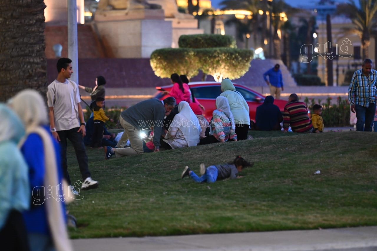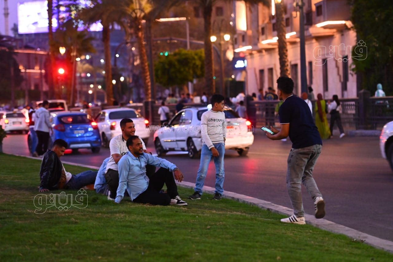 فرحة العيد في ميدان التحرير.. العائلات والشباب يفترشون المساحات الخضراء (صور)