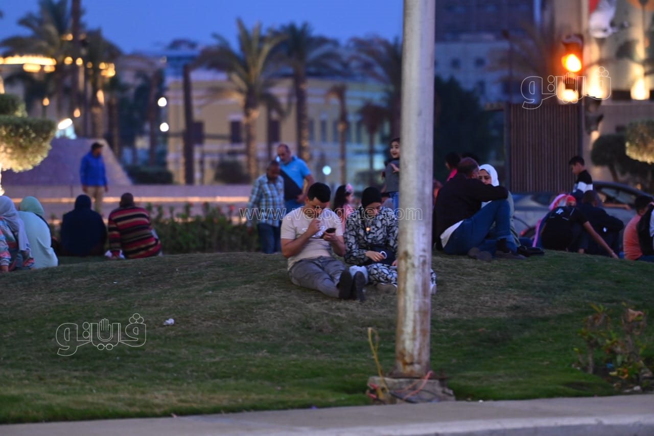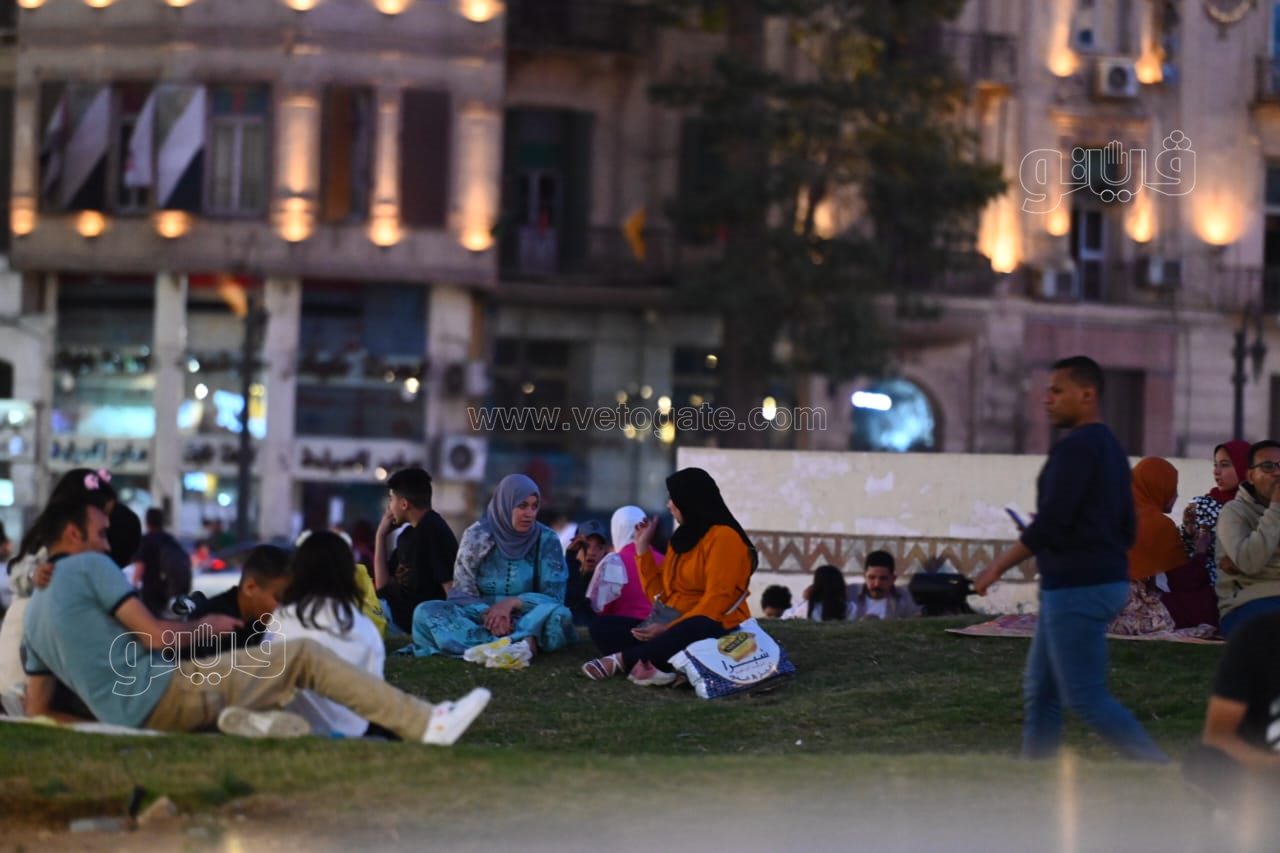 أقدم عدد من المواطنين على افتراش المساحات الخضراء المتواجدة في ميدان التحرير بوسط القاهرة، وذلك أثناء احتفالهم بثالث أيام عيد الفطر المبارك.