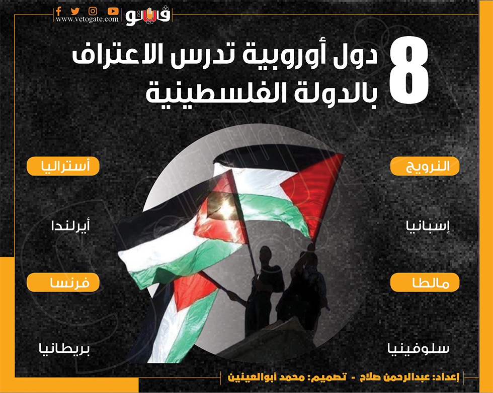 8 دول أوروبية تدرس الاعتراف بالدولة الفلسطينية (إنفوجراف) الجمعة 12/أبريل/2024 - 11:00 م 4/12/2024 11:00:06 PM فلسطين، فيتو عبدالرحمن صلاح شارك طباعة 18 حجم الخط شارك طباعة فلسطين الدولة الفلسطينية الاعتراف بفلسطين أوروبا طوفان الأقصى غزة