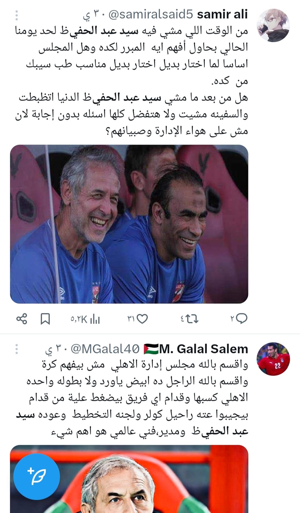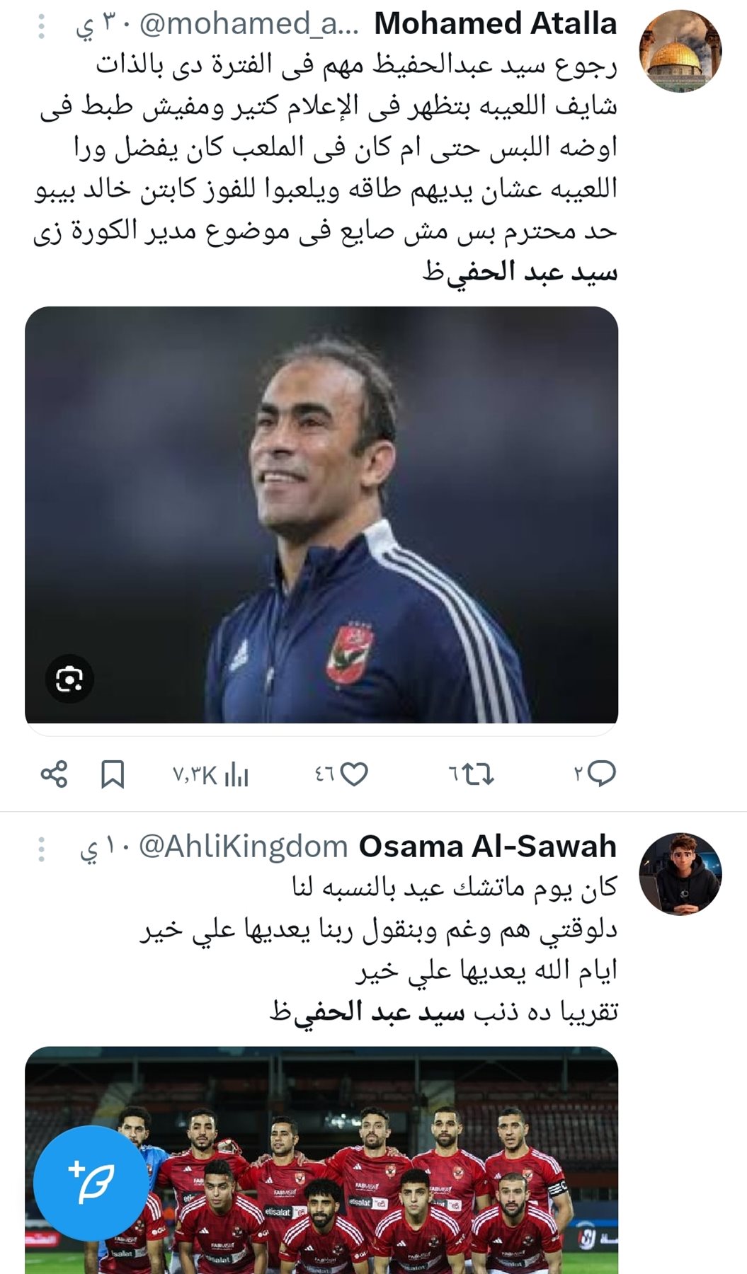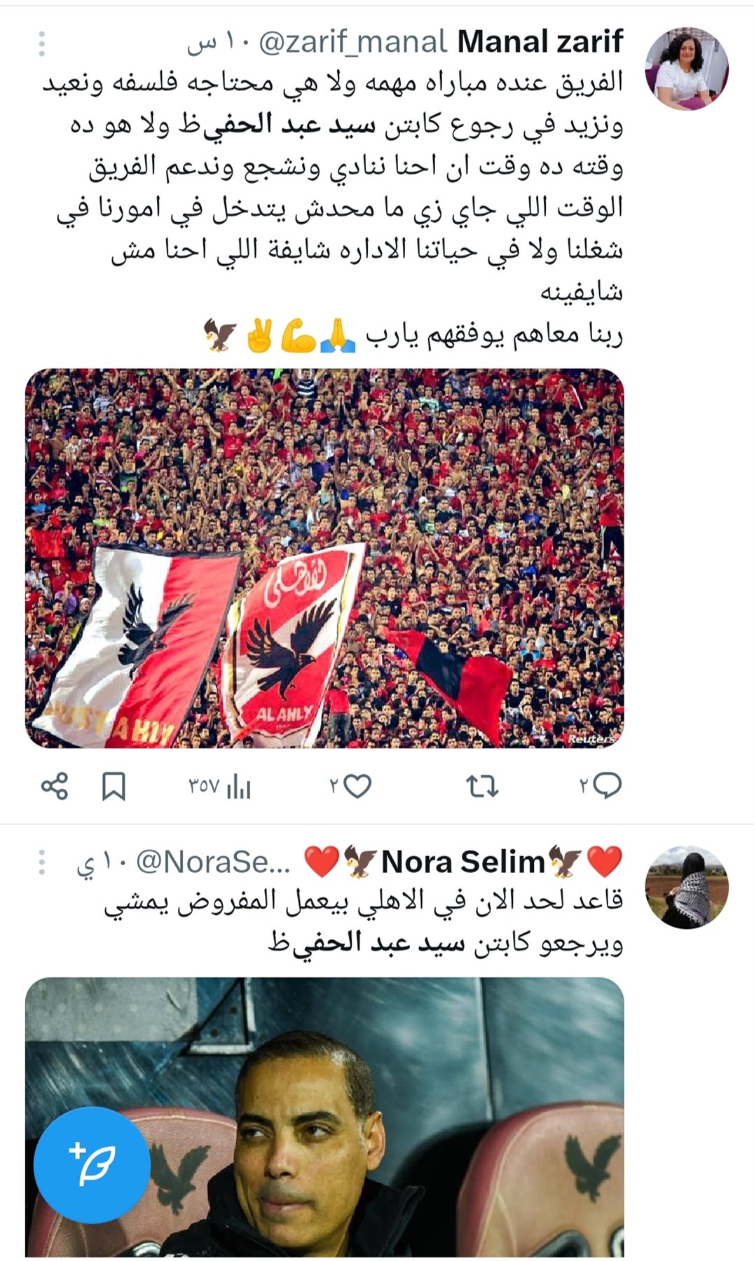 وجاءت مطالب جماهير الاهلي بعودة سيد عبد الحفيظ بعد سلسلة نتائج الفريق السيئة بالدوري وان عودة مدير الكرة السابق هو بداية المسار الصحيح لعودة إنجازات الفريق.