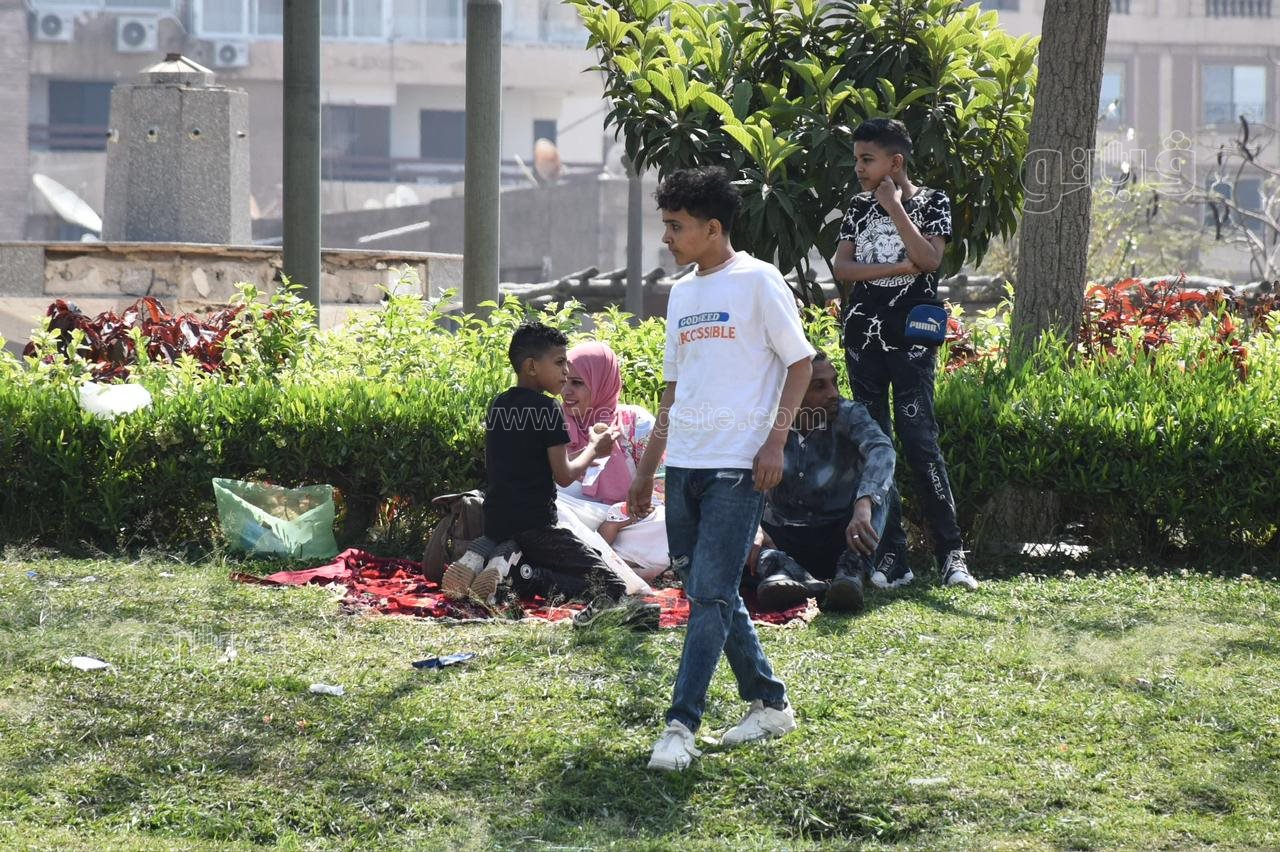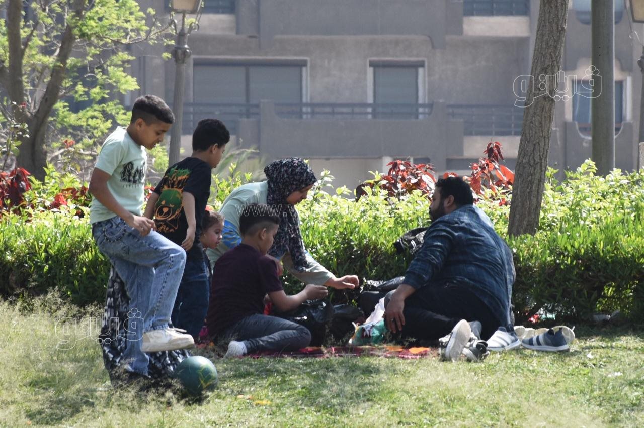 وشهدت الحديقة افتراش العائلات للأراضي الخضراء، مع انشغال الأطفال بلعب كرة القدم وركوب الدراجات، وسط حالة من السعادة سيطرت على الجميع فرحًا بقدوم العيد.