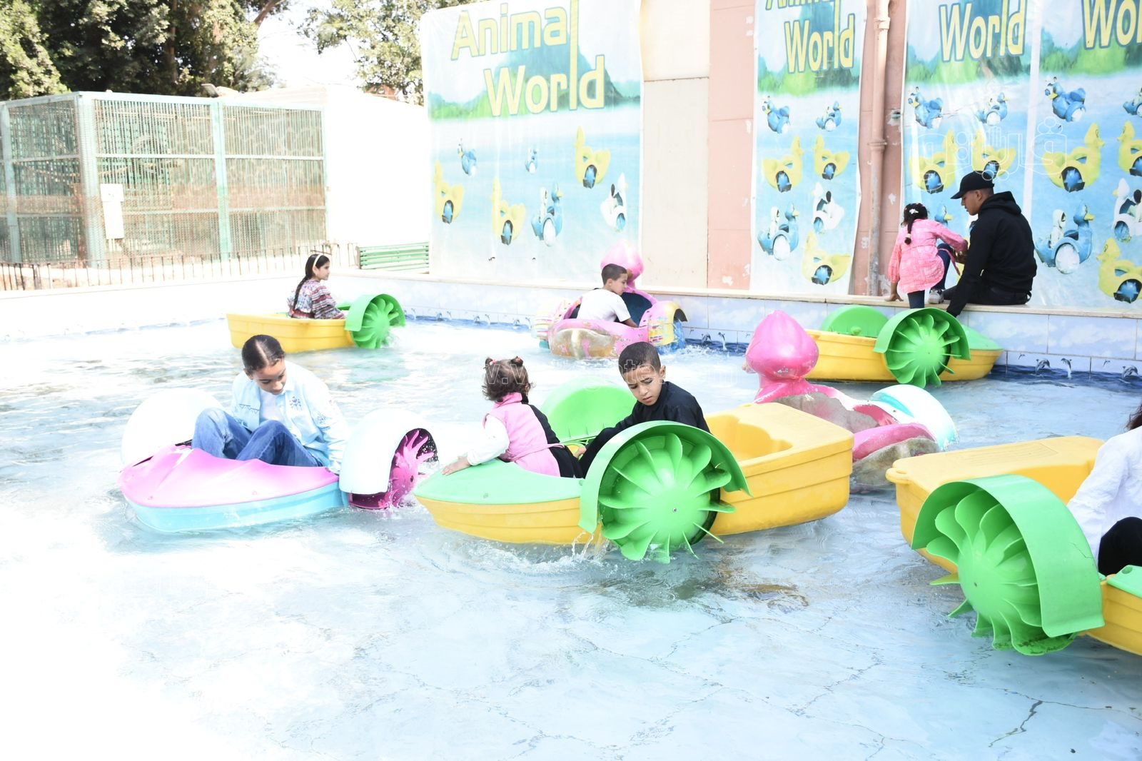 شهدت الحديقة الدولية بمدينة نصر، منذ قليل، استمتاع العشرات من الأطفال مع ذويهم بأجواء عيد الفطر المبارك داخل منطقة حديقة الحيوان والملاهي المائية الموجودة داخل الحديقة بمنطقة مدينة نصر خلال إجازة العيد.