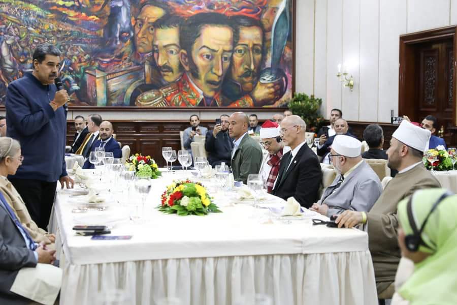 استقبل نيكولاس مادورو رئيس جمهورية فنزويلا البوليفارية موفدي وزارة الأوقاف المصرية على رأس وفد من سفراء الدول العربية والإسلامية وممثلي المراكز الإسلامية بالقصر الجمهوري بجمهورية فنزويلا، بحضور رئيس المجلس الوطني “البرلمان”، ونائبة رئيس الجمهورية، ووزير الخارجية ومحافظ ولاية ميرندا.