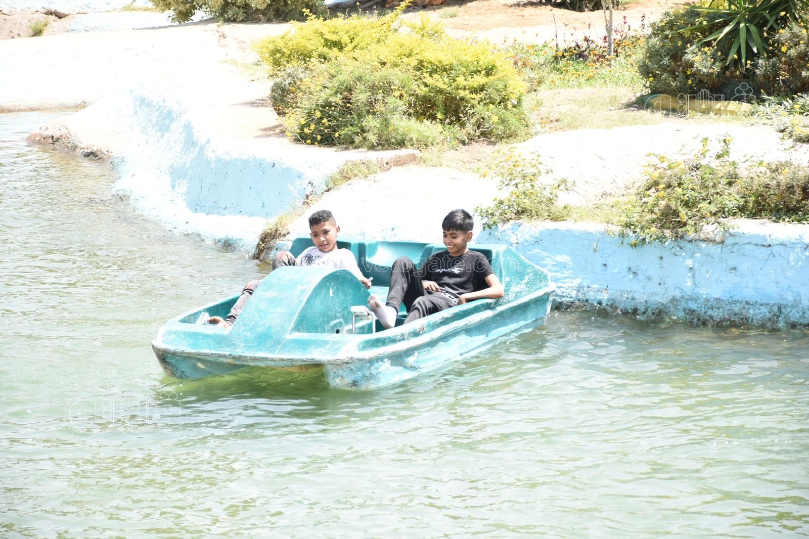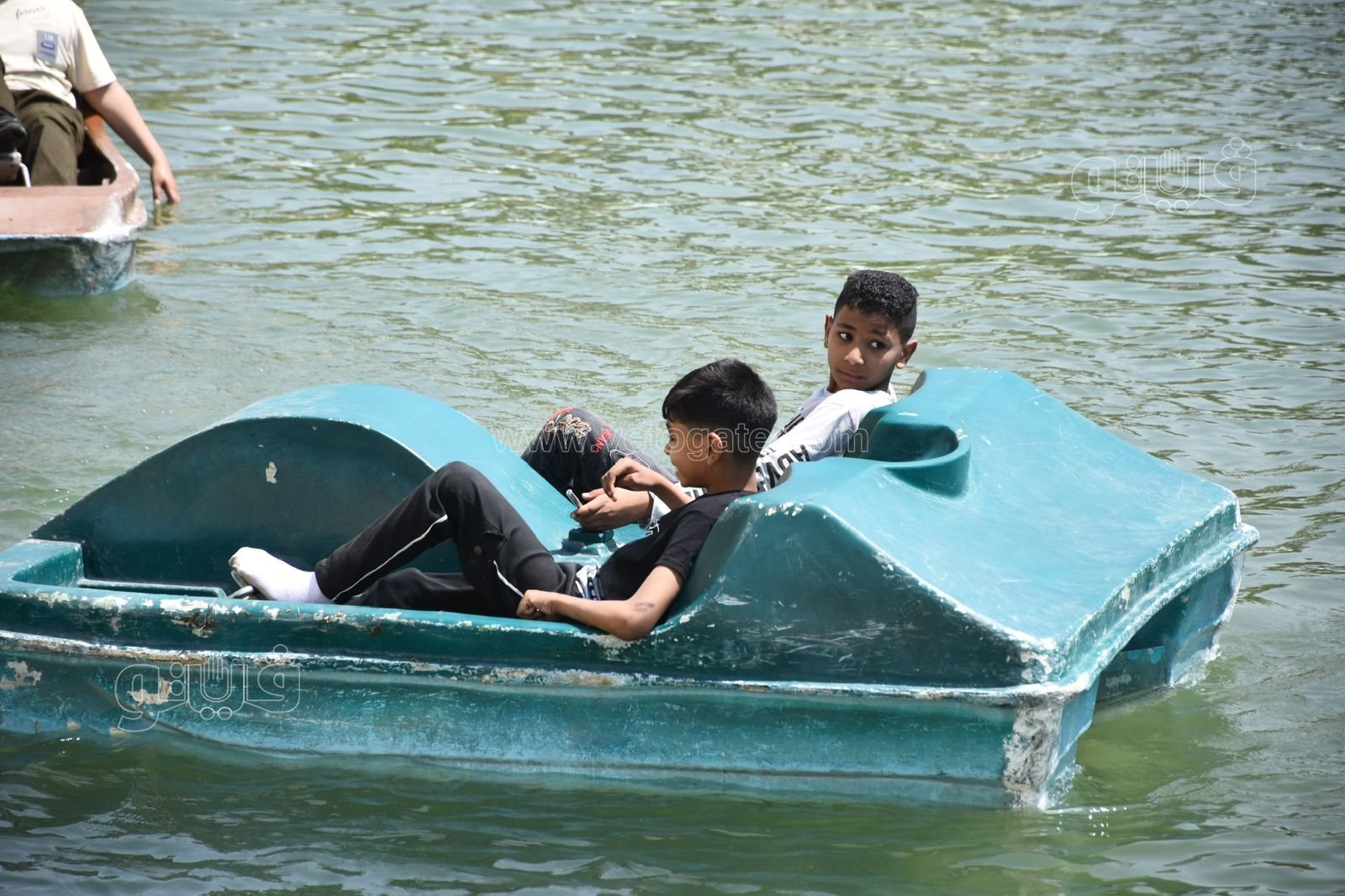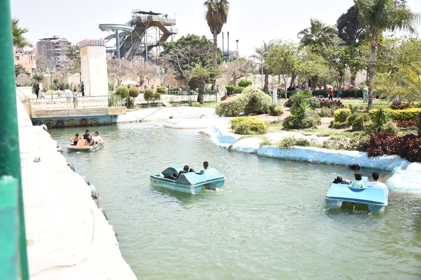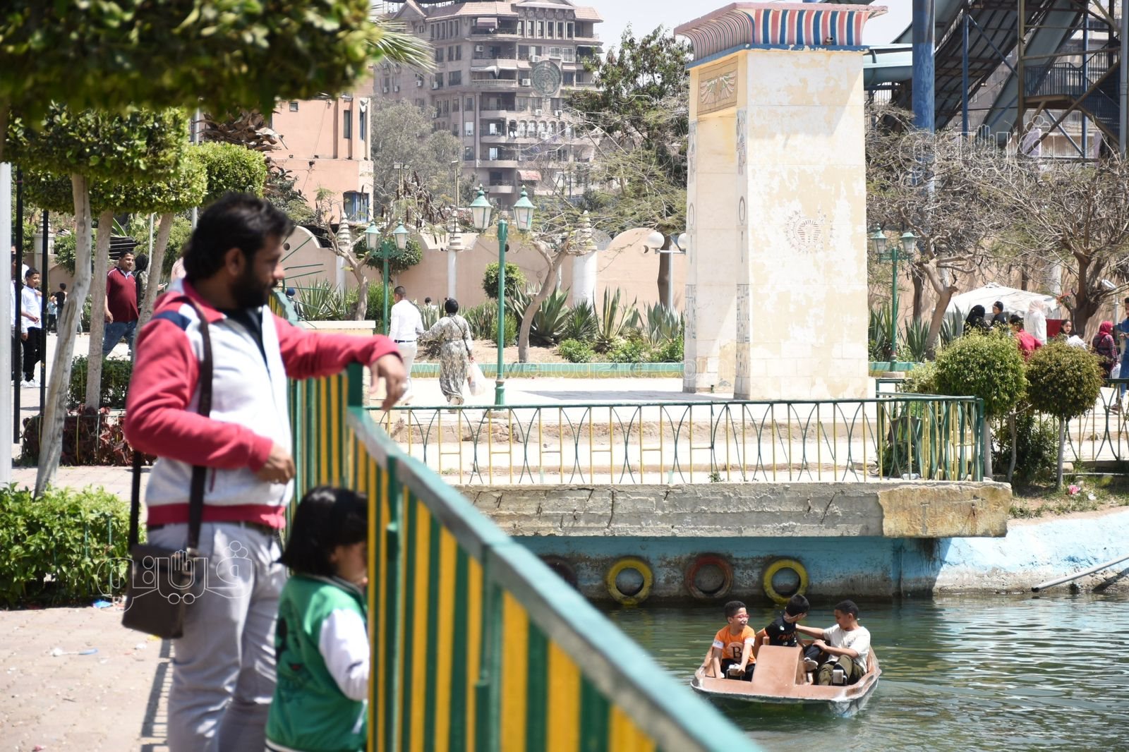 وأقبل الأطفال مع ذويهم على دخول حديقة الحيوان المتواجدة داخل الحديقة، وقاموا بركوب البدلات المائية وألعاب الملاهي المختلفة، مع تفضيل عائلات أخرى افتراش أراضي الحديقة، واللعب مع أطفالهم الكرة والدراجات.