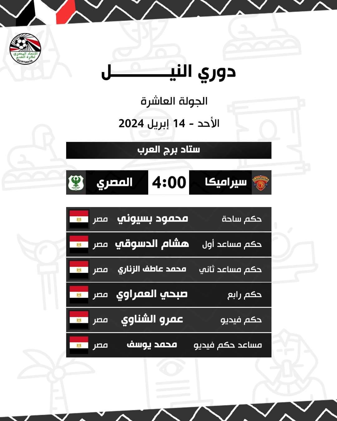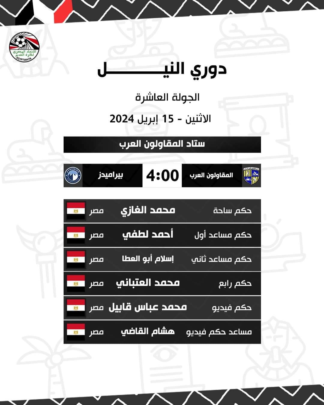 الدوري المصري، أعلنت لجنة الحكام بالاتحاد المصري لكرة القدم، طاقم تحكيم المباريات المؤجلة من الجولة العاشرة للدوري.