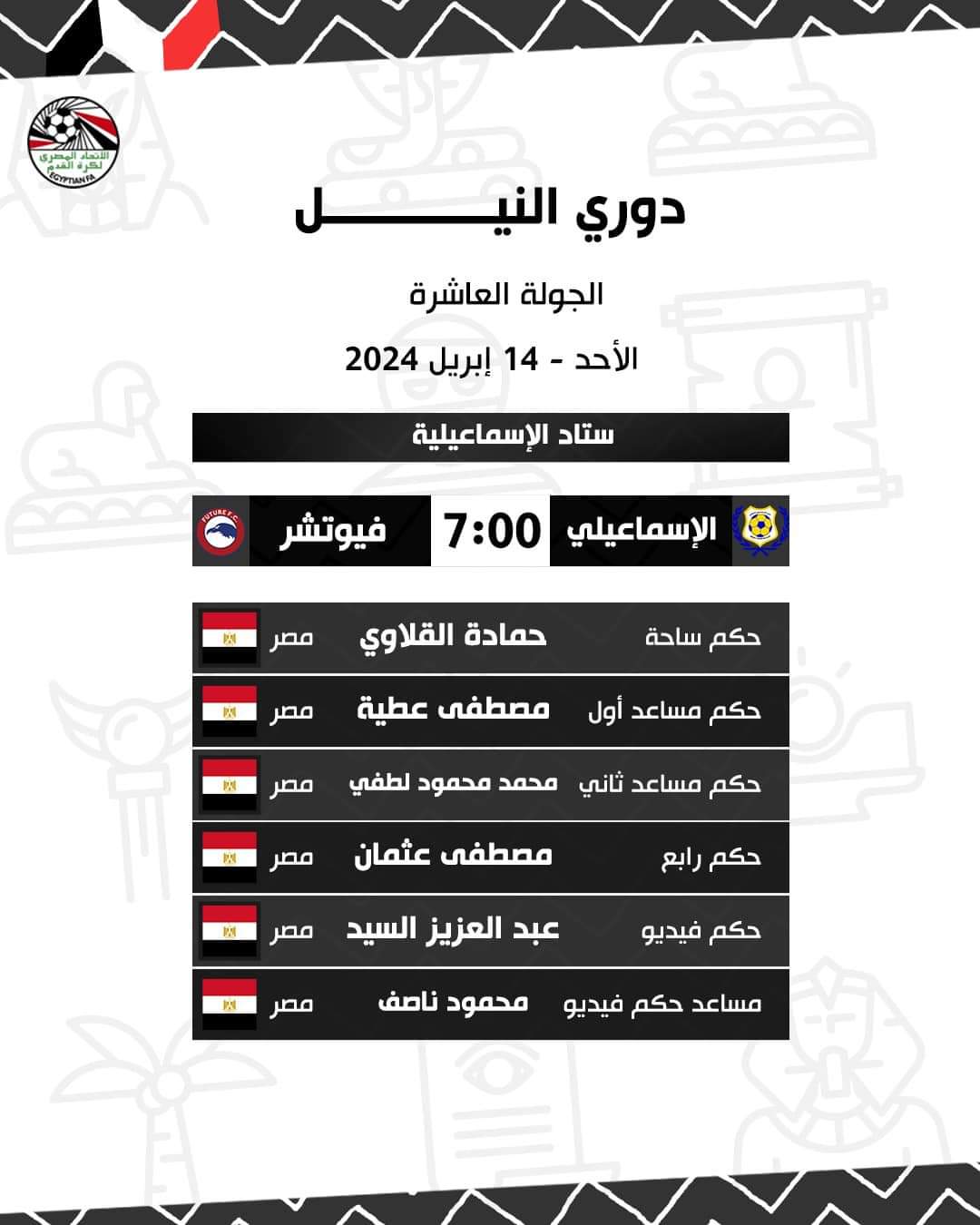 ويدير لقاء الاسماعيلي وفيوتشر حماده القلاوي.