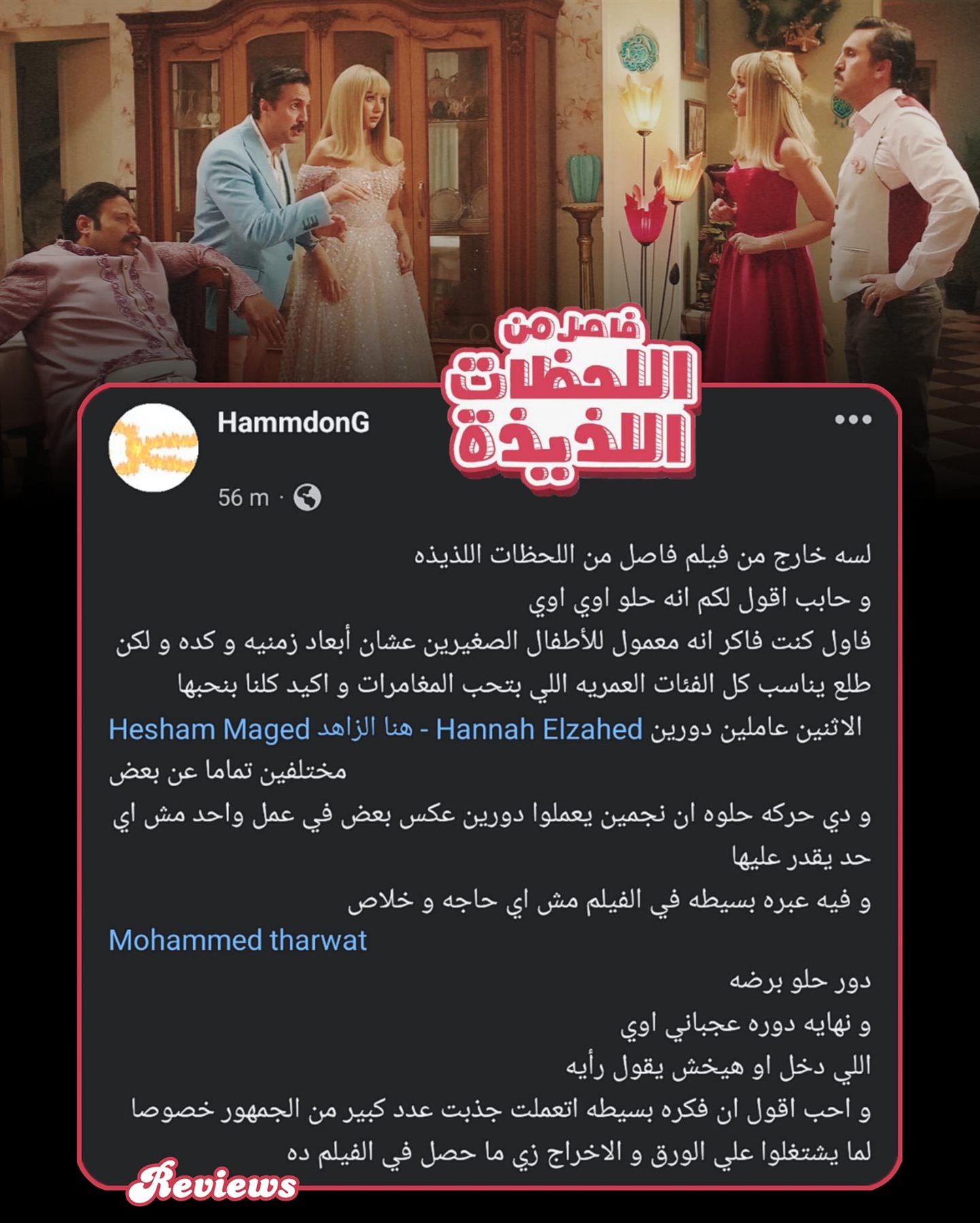وكتب هشام ماجد في منشوره: "الحمد لله.. شكرا جدا" كتعليق على صور لتعليقات الجمهور المختلفة التي تظهر إعجابها بالفيلم.