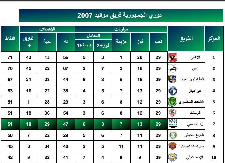 بعد تتويج الأهلي، ترتيب دوري الجمهورية للناشئين 2007