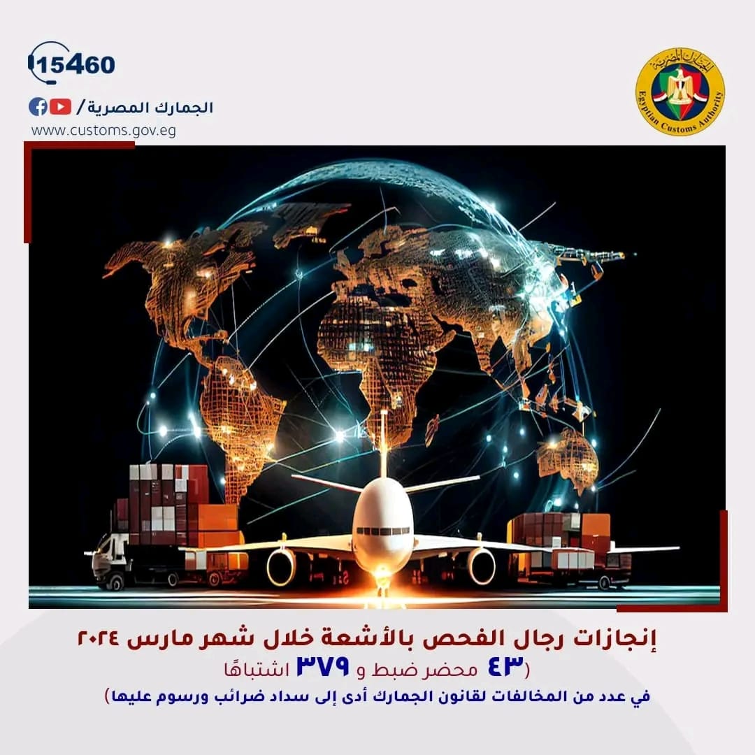 إدارة الفحص بالأشعة بمصلحة الجمارك تساهم في ضبط 43 محضر تهرب خلال مارس
