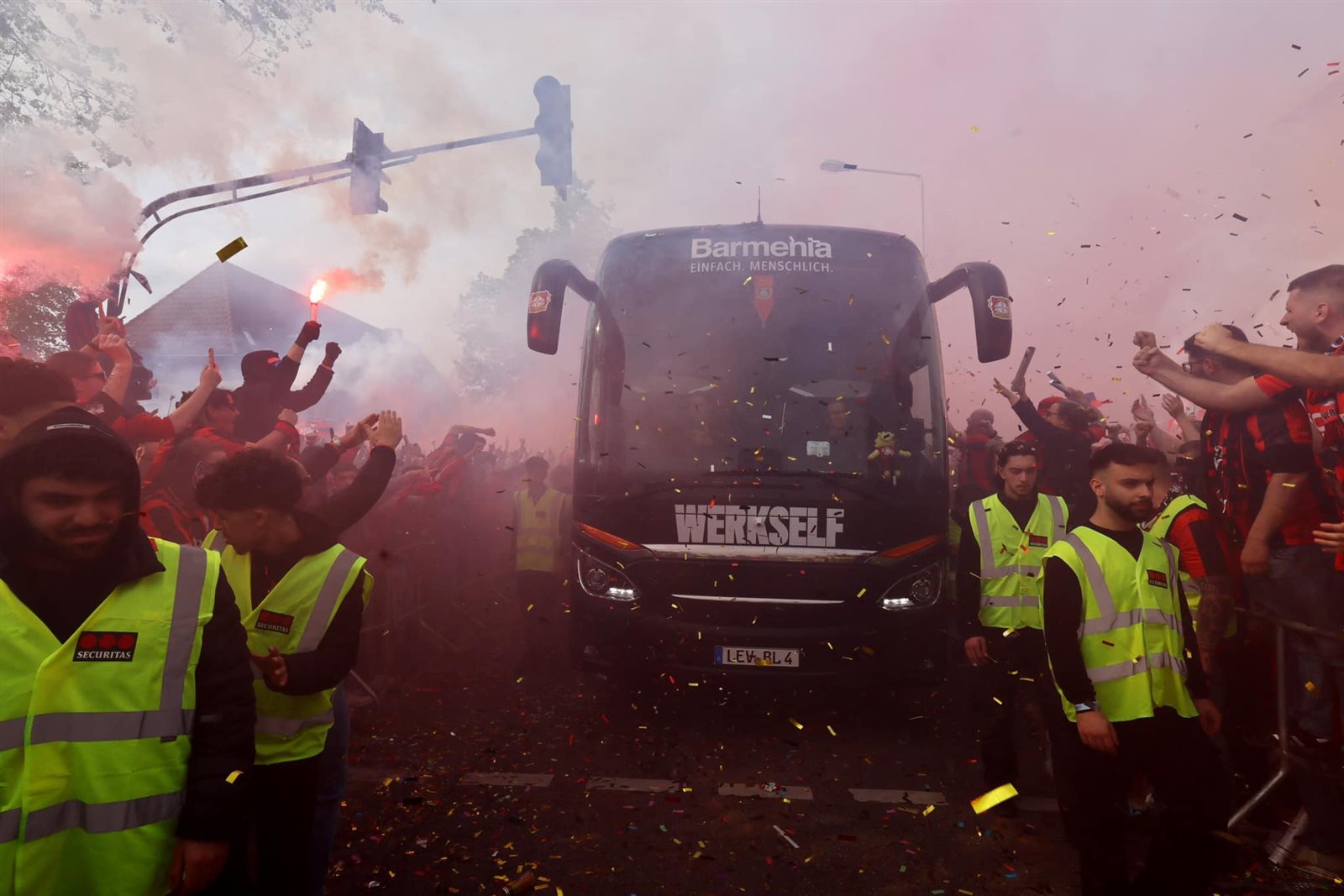 حرصت جماهير فريق باير ليفركوزن على استقبال حافلة فريقها بالألعاب النارية والشماريخ تمهيدا للاحتفال بلقب الدوري الألماني حال الفوز اليوم الأحد على فيردر بريمن على ملعب باي أرينا، ضمن لقاءات الجولة رقم 29.