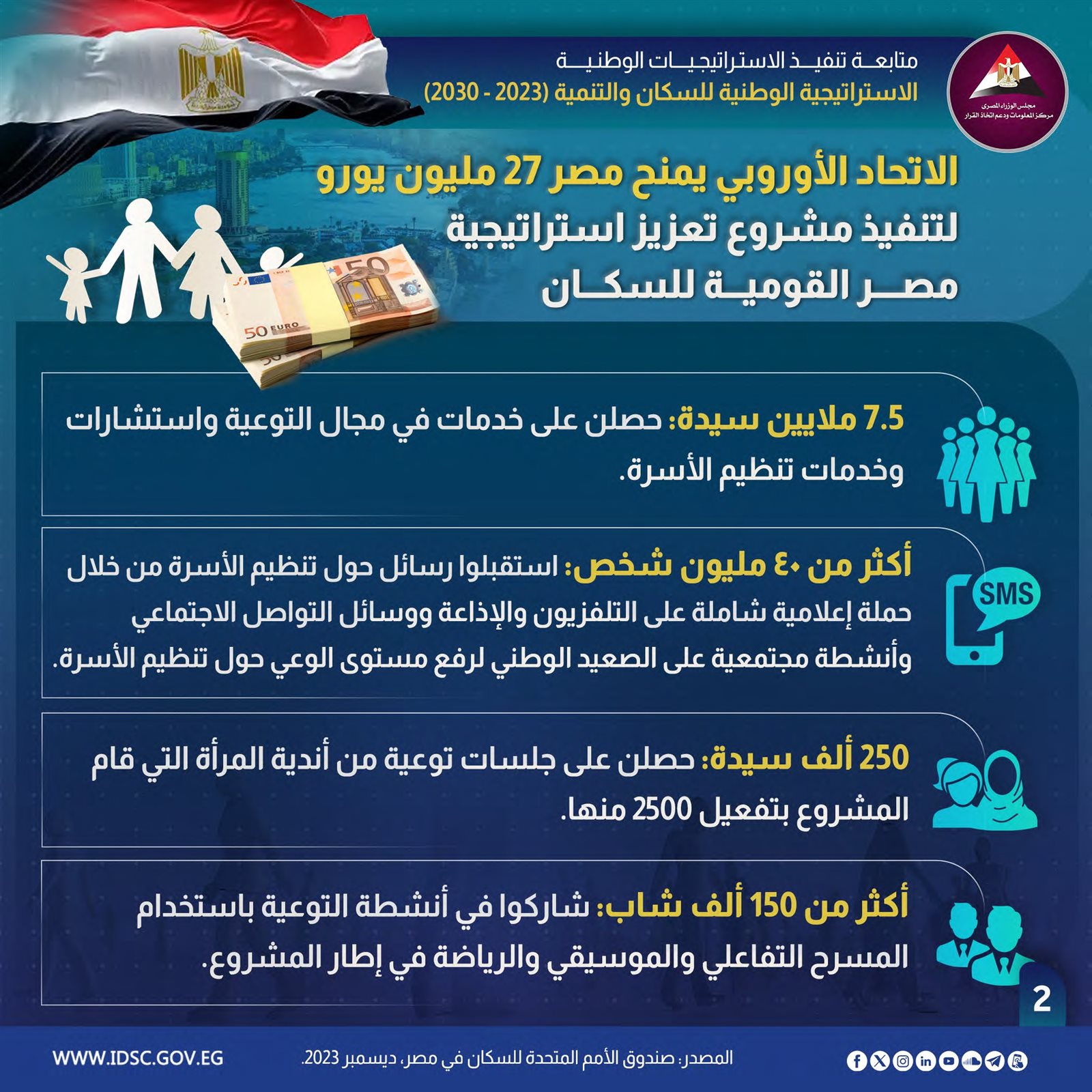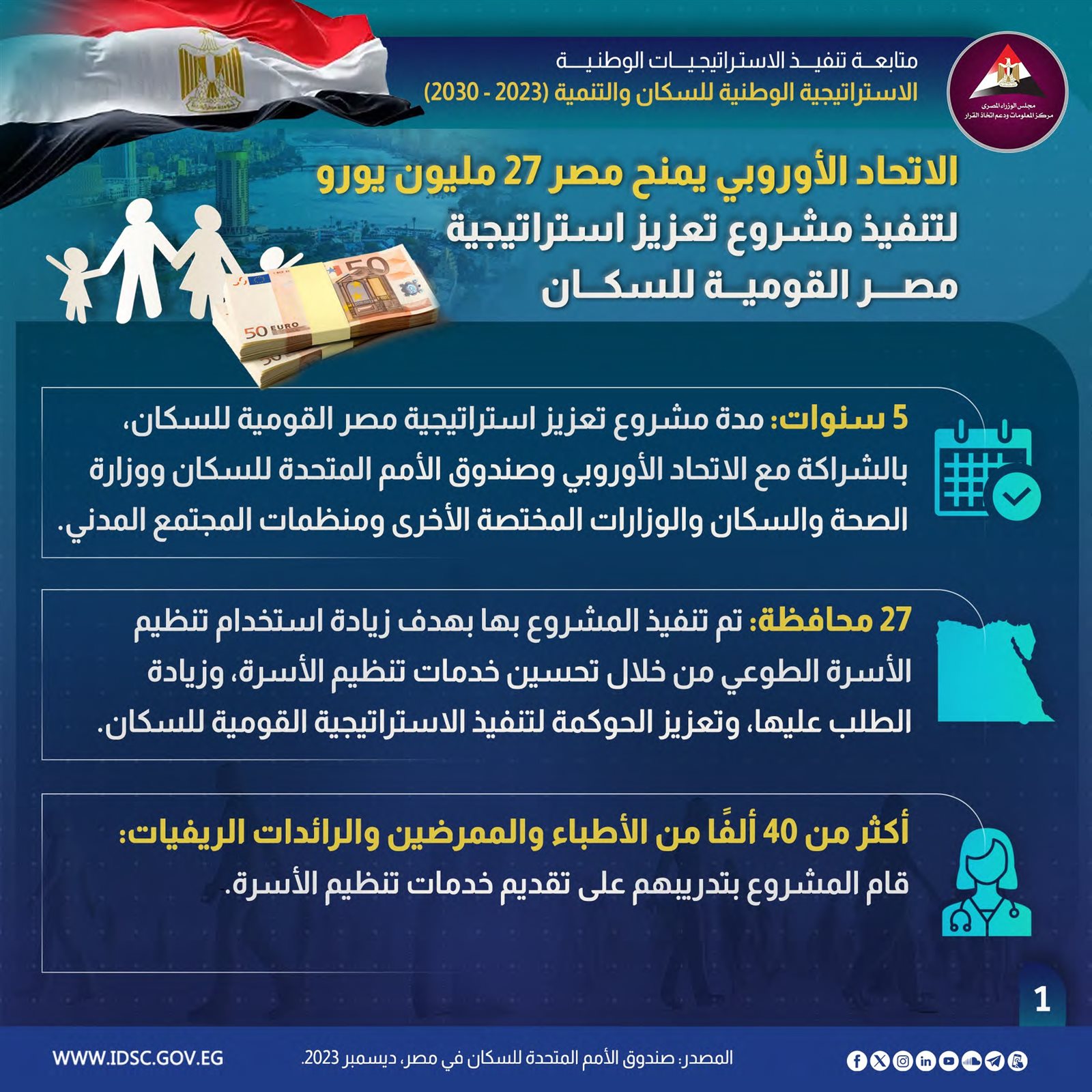 الاتحاد الأوروبي يمنح مصر 27 مليون يورو لمشروعات مصر القومية للسكان (إنفوجراف)