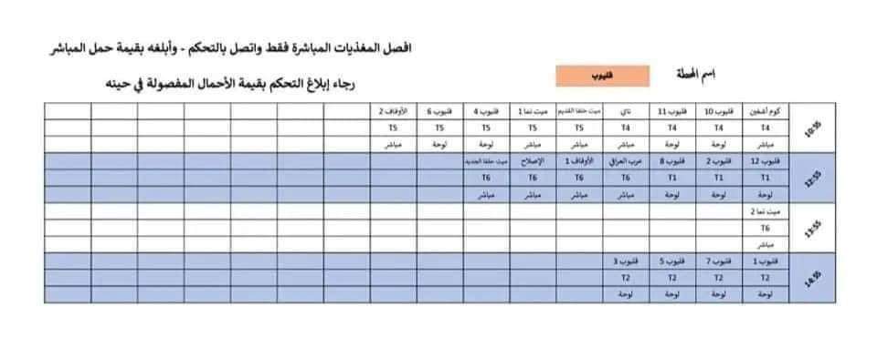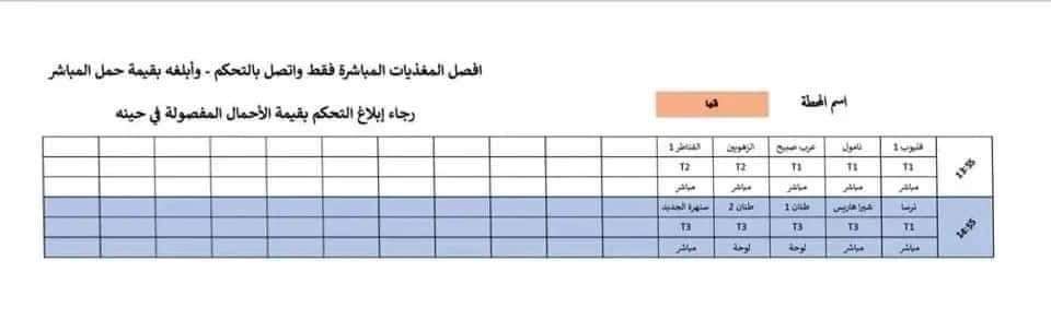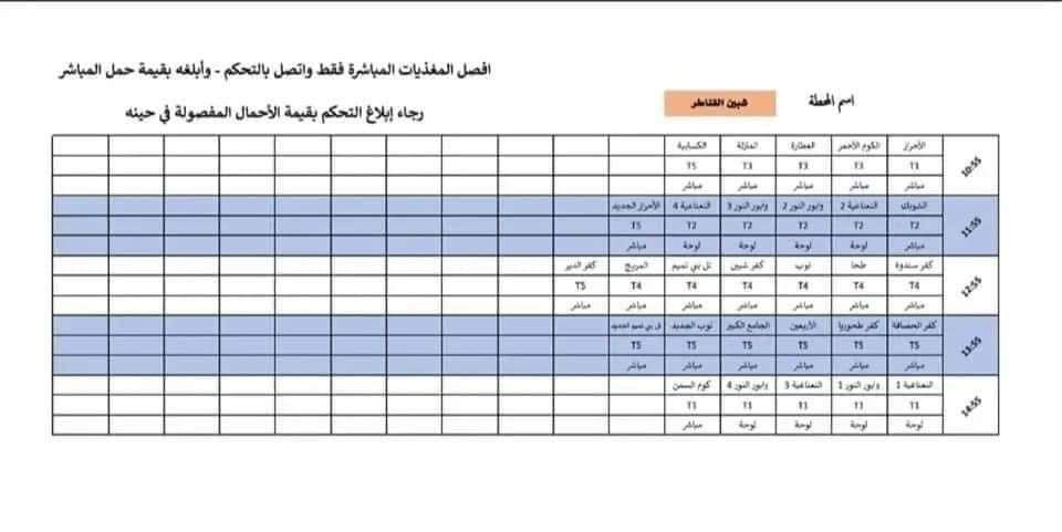 مواعيد بدء وانتهاء خطة تخفيف الأحمال