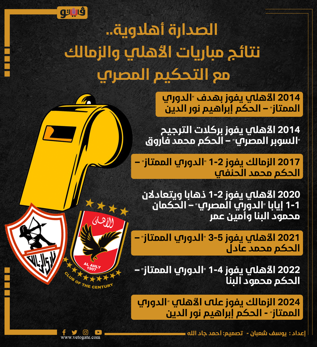 الصدارة أهلاوية.. نتائج مباريات الأهلي والزمالك مع التحكيم المصري (إنفوجراف) الإثنين 15/أبريل/2024 - 11:05 م 4/15/2024 11:05:01 PM نتائج الأهلي والزمالك مع الحكام المصريين، فيتو يوسف شعبان شارك طباعة 18 حجم الخط شارك طباعة الأهلى والزمالك لجنة الحكام بإتحاد الكرة المصري فيتور بيريرا إبراهيم نور الدين الدوري المصري