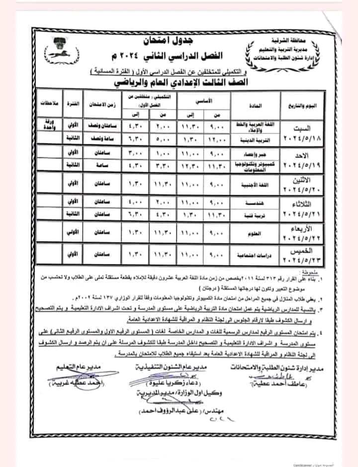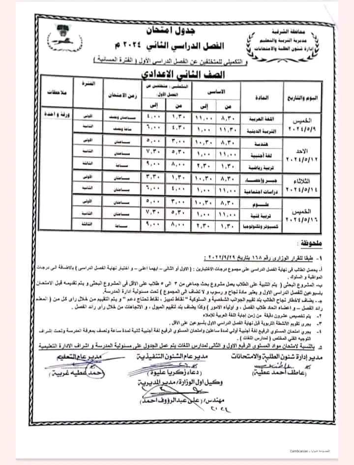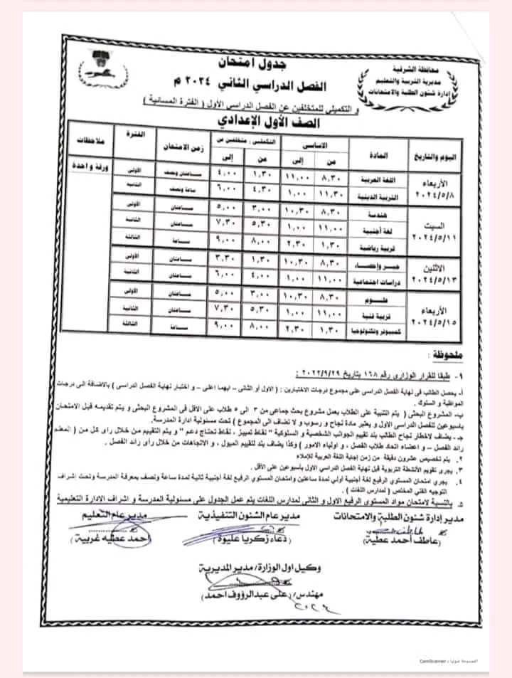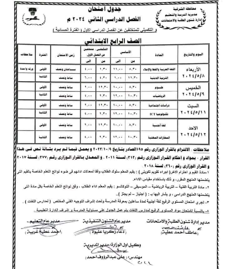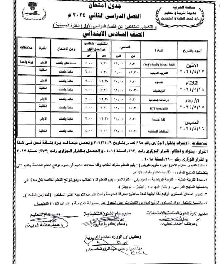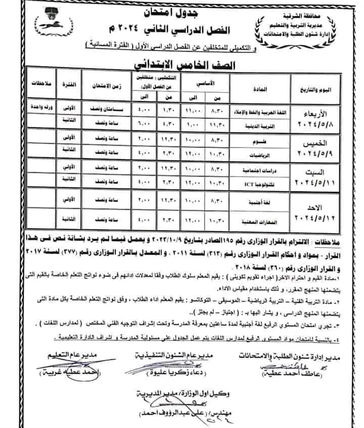 تنطلق 8 مايو، جداول امتحانات نهاية العام بكافة المراحل التعليمية بالشرقية (صور)