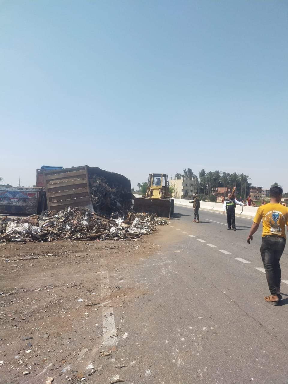 انقلاب سيارة نقل محملة بالخردة على طريق الإسماعيلية السويس (صور)