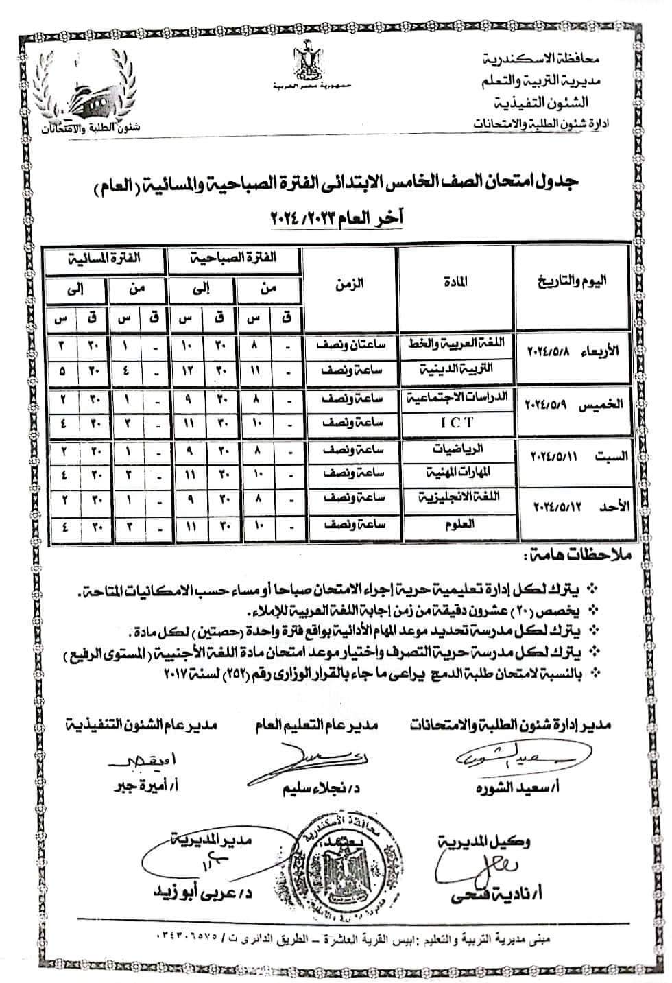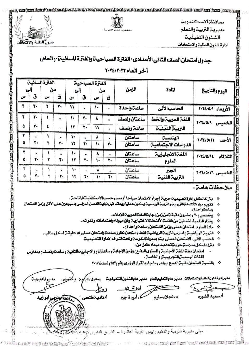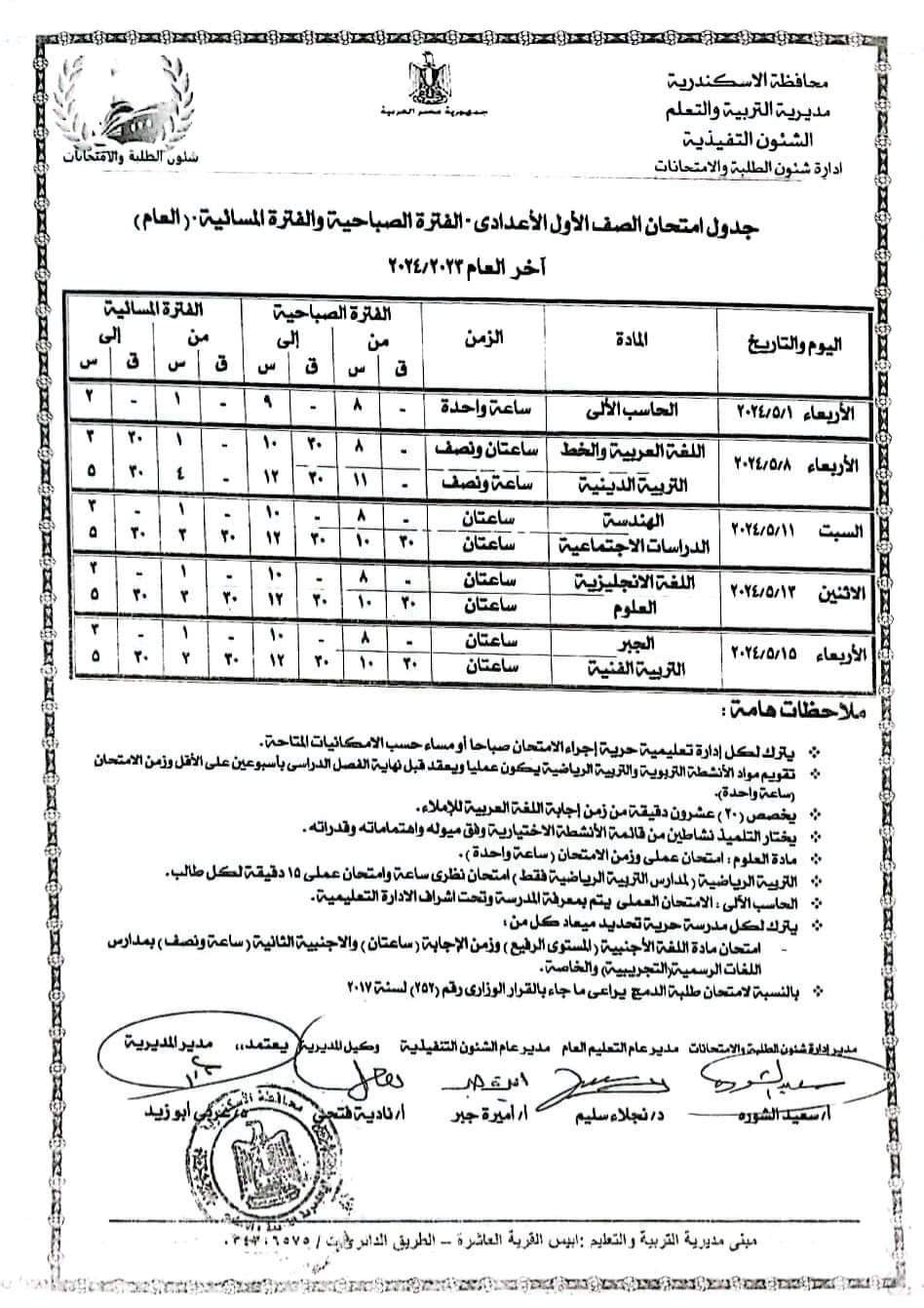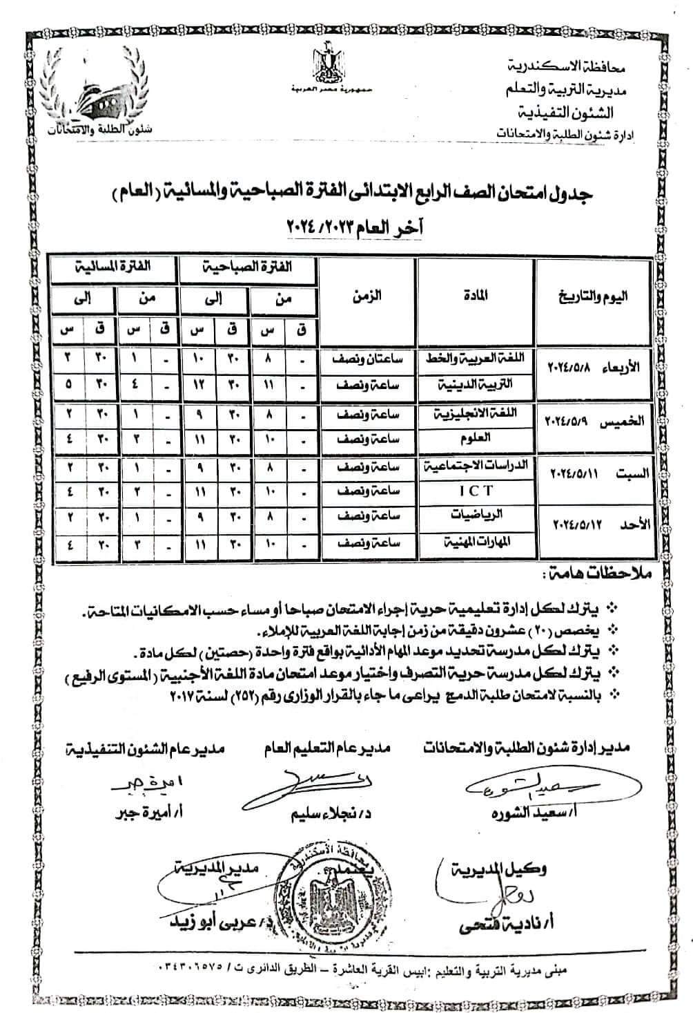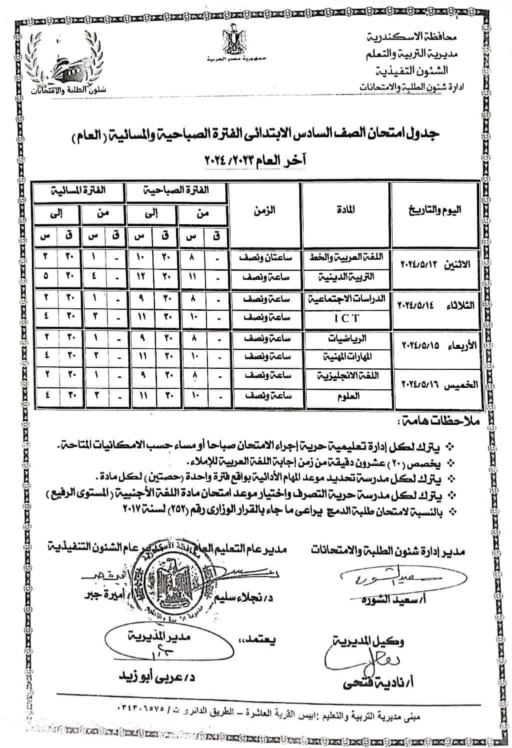 ننشر جداول امتحانات الفصل الدراسي الثاني لجميع سنوات النقل في الإسكندرية