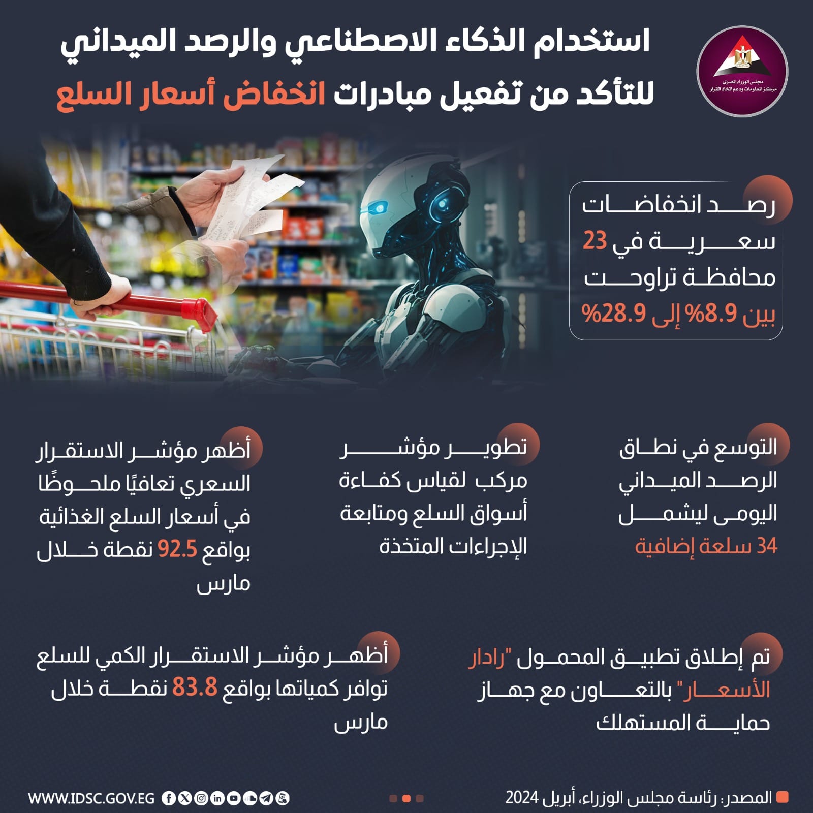 معلومات الوزراء تبرز استخدام الذكاء الاصطناعي والرصيد الميداني لتفعيل مبادرة انخفاض الأسعار (إنفوجراف)